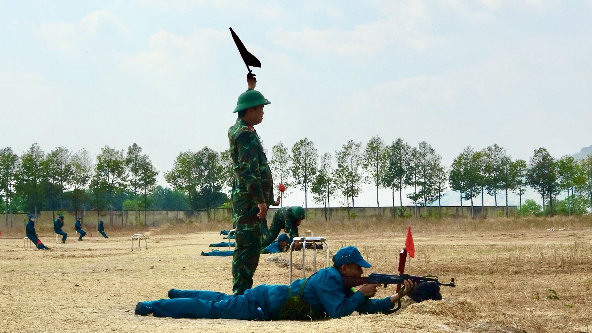 LLVT huyện Tân Biên thi bắn súng AK.