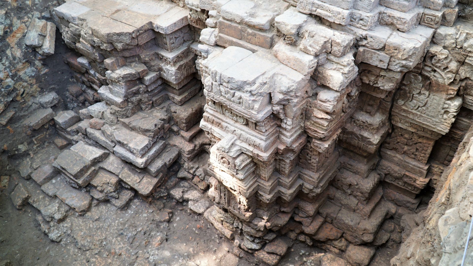 Dấu tích công trình kiến trúc đền tháp có niên đại hơn 1.000 năm, thuộc giai đoạn hậu Óc-eo được khai quật tại Khu di tích lịch sử - văn hoá Bến Đình năm 2019. (Ảnh minh hoạ: Tâm Giang)