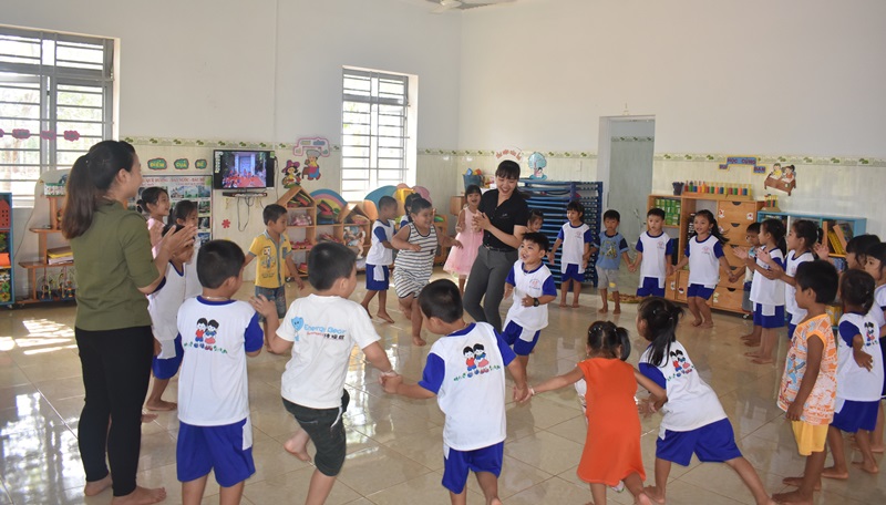 Học sinh trường mầm non Tân Khai trong giờ học hát múa. |