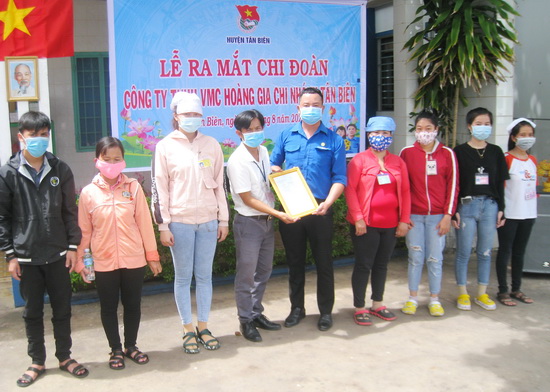 Ngày 19.8, Ban Thường vụ Huyện đoàn Tân Biên phối hợp với Ban Giám đốc Công ty TNHH VMC Hoàng Gia tổ chức ra mắt Chi đoàn cơ sở thuộc chi nhánh công ty tại Tân Biên.