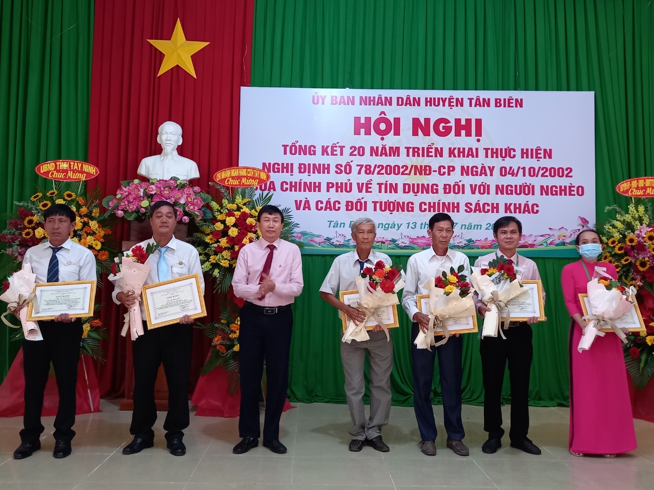 UBND huyện Tân Biên vừa tổ chức tổng kết 20 năm triển khai thực hiện Nghị định số 78/2002/NĐ-CP ngày 4.10.2002 của Chính phủ về tín dụng đối với người nghèo và các đối tượng chính sách khác.