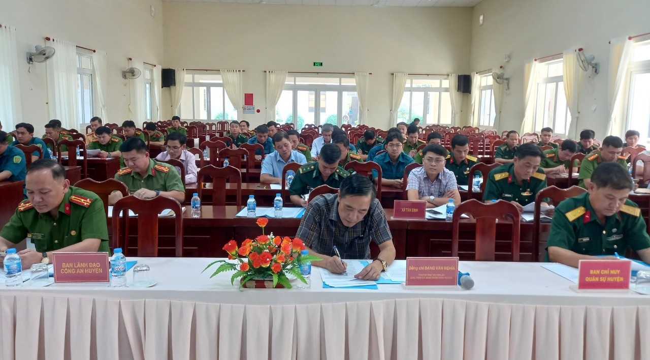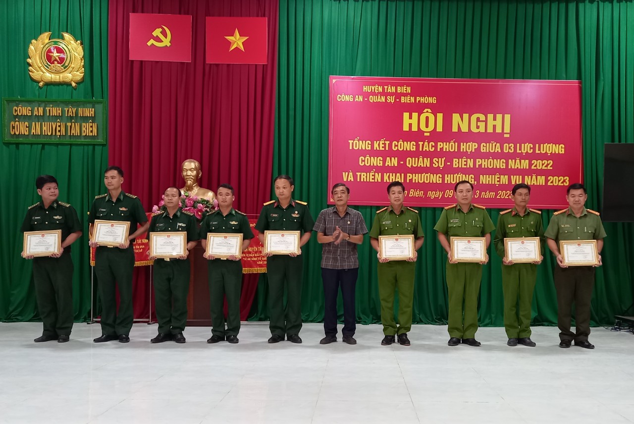 UBND huyện Tân Biên tổng kết công tác phối hợp thực hiện nhiệm vụ bảo vệ an ninh quốc gia, bảo đảm trật tự an toàn xã hội, đấu tranh phòng chống tội phạm và nhiệm vụ quốc phòng năm 2022 giữa lực lượng Công an - Quân sự - Biên phòng theo Nghị định số 03/2019/NĐ-CP ngày 5.9.2019 của Chính phủ.