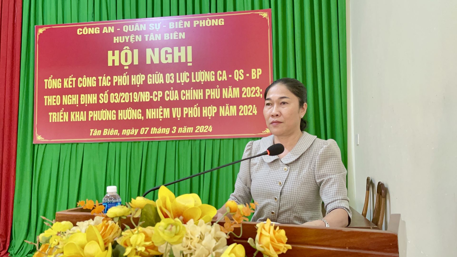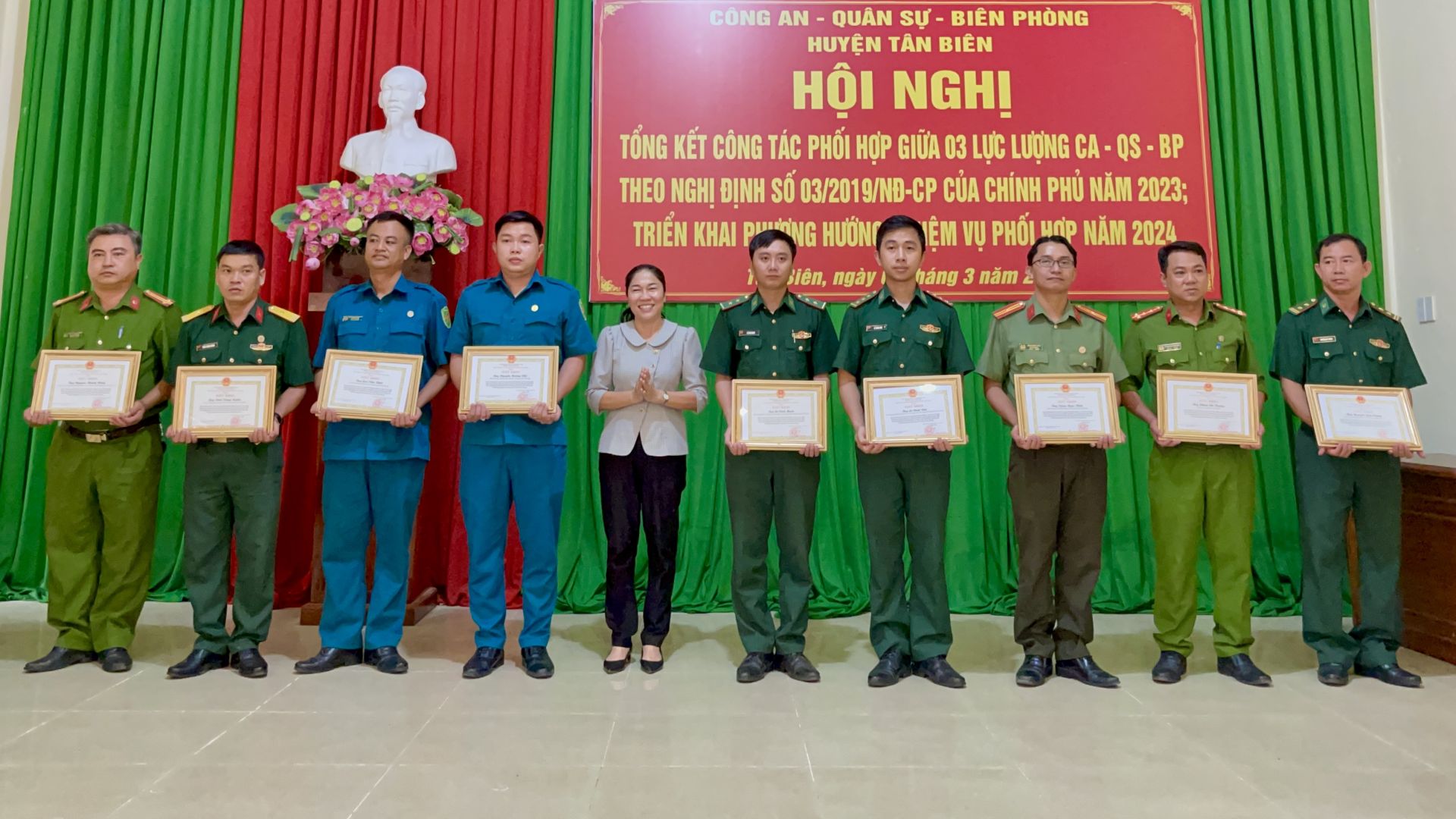 UBND huyện Tân Biên vừa tổ chức tổng kết công tác phối hợp giữa 3 lực lượng Công an - Quân sự - Biên phòng theo Nghị định số 03/2019/NĐ-CP của chính phủ năm 2023; triển khai phương hướng nhiệm vụ năm 2024.