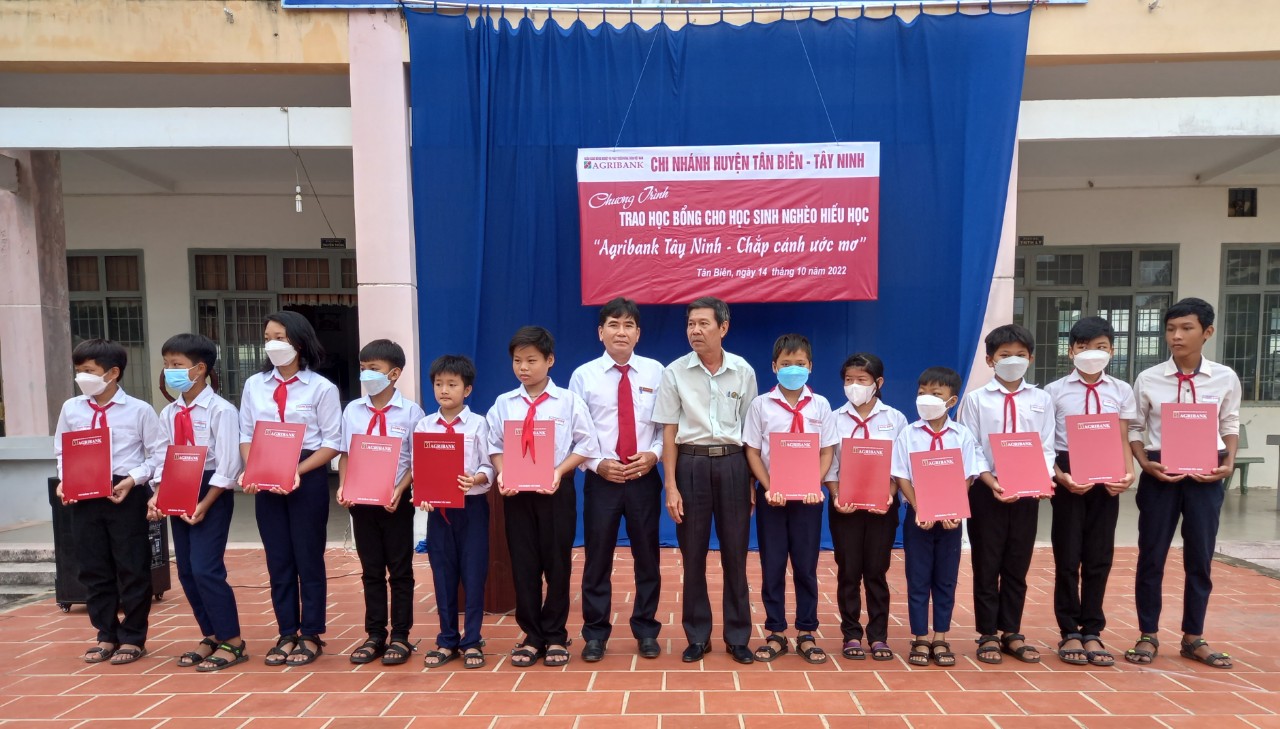 Ngân hàng Nông nghiệp và phát triển Nông thôn Chi nhánh Tân Biên (Agribank Tân Biên) tổ chức chương trình trao học bổng “Agribank Tây Ninh – Chắp cánh ước mơ” cho các em học sinh nghèo hiếu học trên địa bàn huyện.