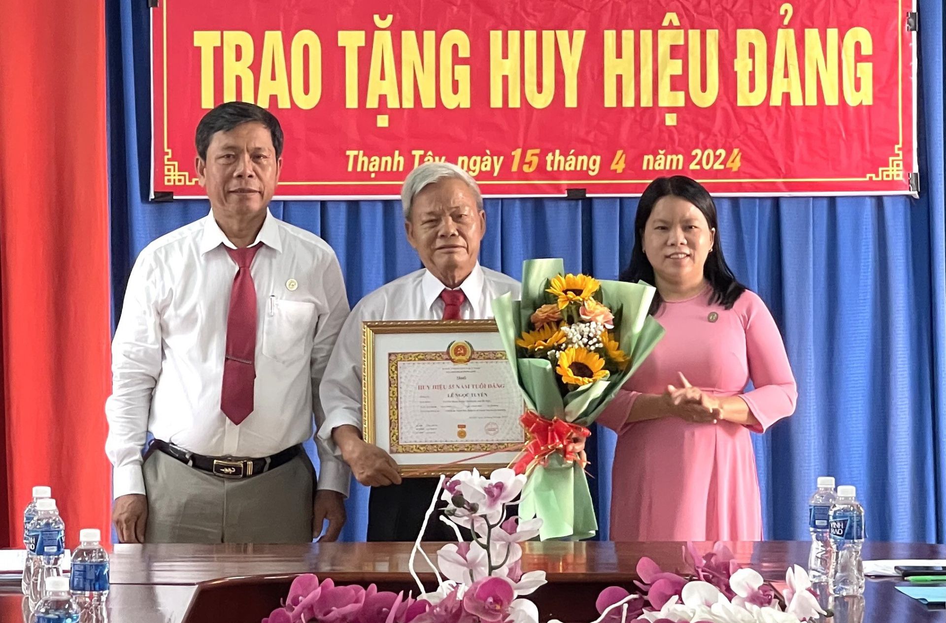 Sáng 15.4, ông Nguyễn Ngọc Trỗi– Phó Chủ tịch Thường trực UBND huyện đến dự và trao Huy hiệu 55 năm tuổi Đảng cho đảng viên Lê Ngọc Tuyên- hiện sinh hoạt Đảng tại Chi bộ ấp Thạnh Sơn, Đảng bộ xã Thạnh Tây.