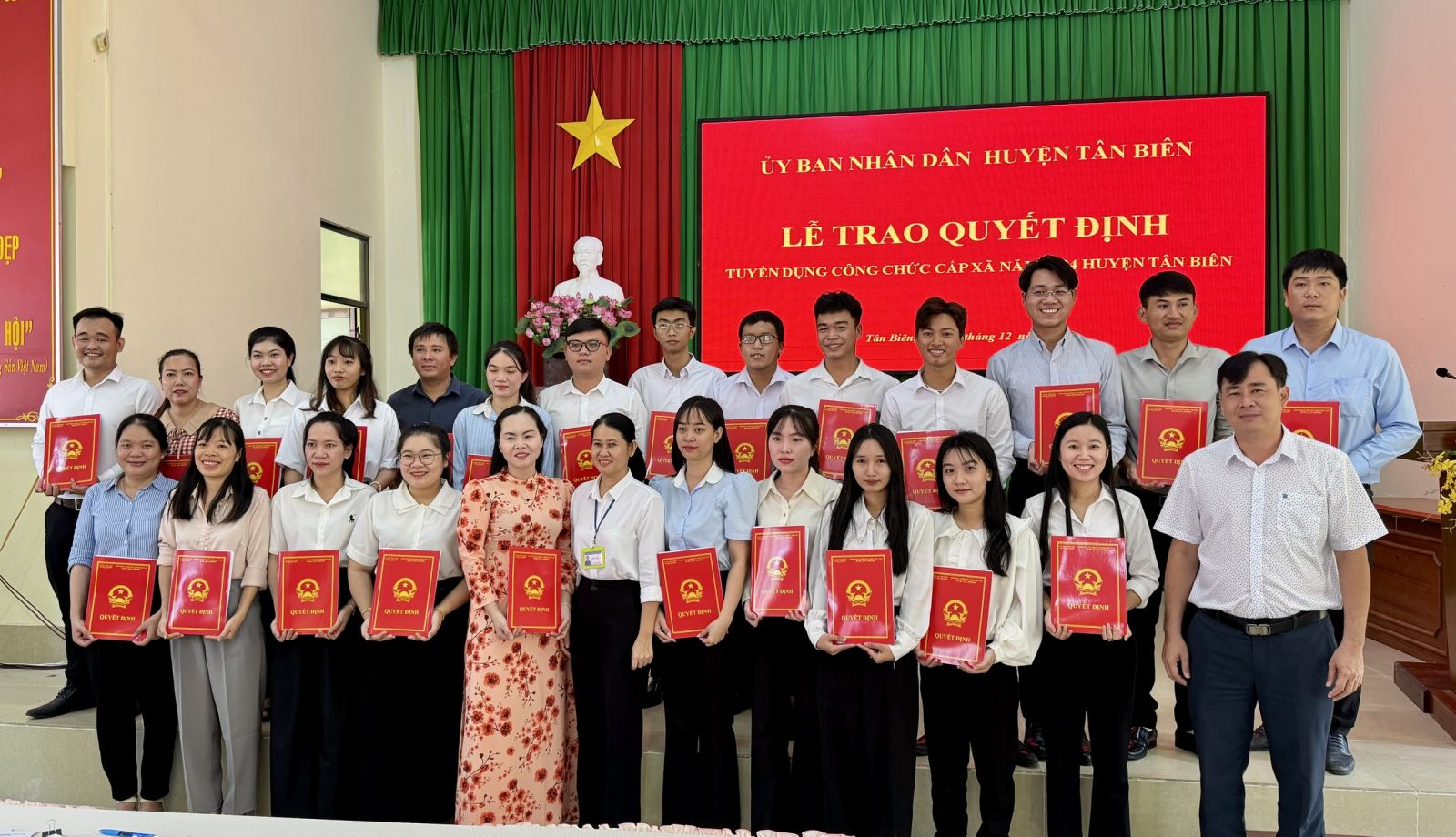Chủ tịch UBND huyện Tân Biên trao quyết định tuyển dụng cho 26 công chức vào làm việc tại 10 xã, thị trấn.