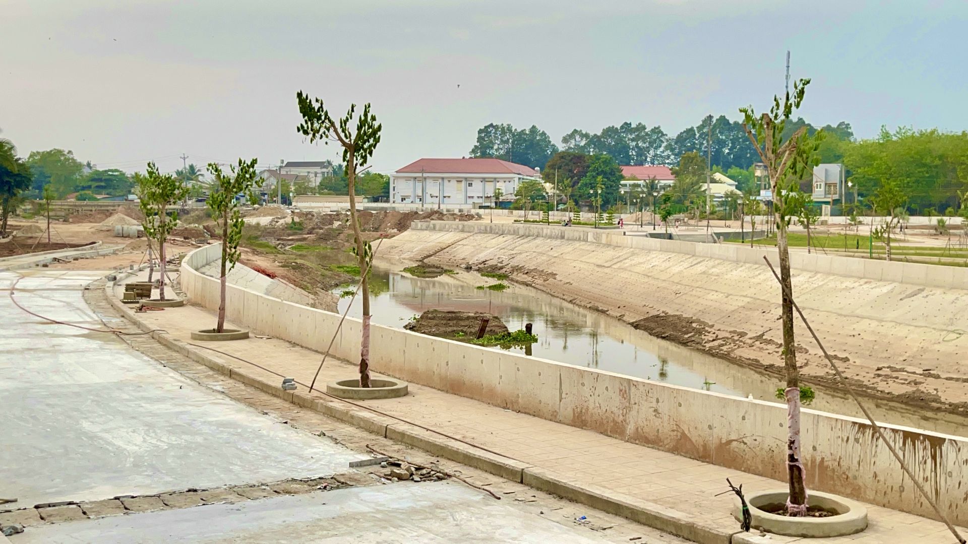 Dự án Bờ kè chống sạc lỡ suối Cần Đăng chảy qua trung tâm Thị trấn Tân Biên tiến độ thi công đạt trên 51%.