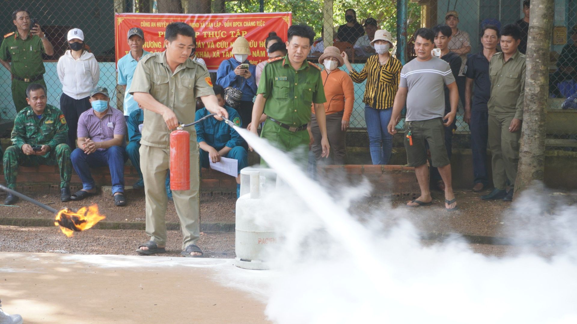 Đại diện Đội PCCC Công an huyện Tân Biên đã tuyên truyền những kiến thức cơ bản về PCCC và hướng dẫn kỹ năng thoát nạn, cách xử lý tình huống khi xảy ra cháy nổ.