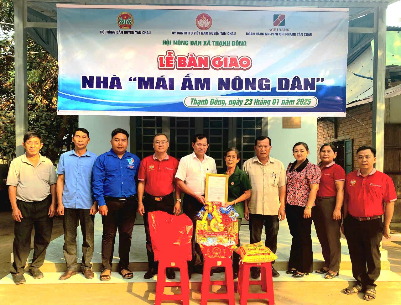 Ngày 23.1, Hội Nông dân huyện Tân Châu phối hợp Hội Nông dân 2 xã Thạnh Đông và Tân Hội tổ chức bàn giao 2 căn nhà Mái ấm nông dân cho hội viên có hoàn cảnh khó khăn về nhà ở.