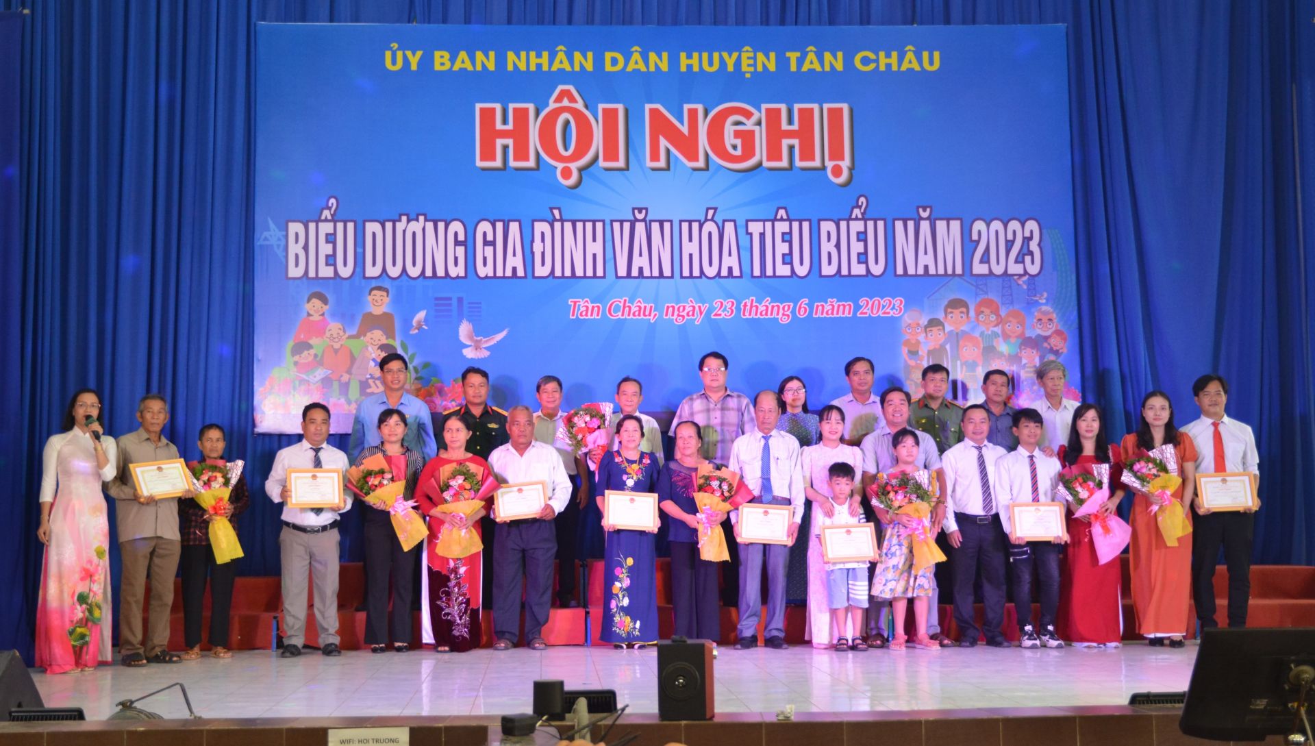 Sáng 23.6, tại Trung tâm Văn hoá, Thể thao và Truyền thanh huyện Tân Châu, UBND huyện Tân Châu tổ chức biểu dương gia đình văn hoá tiêu biểu năm 2023.