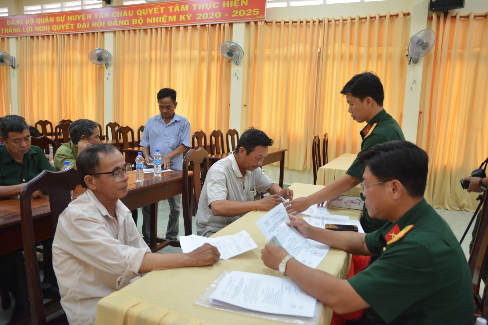 Chiều 27.12, Ban Chỉ huy Quân sự huyện Tân Châu tổ chức Hội nghị chi trả chế độ, trợ cấp một lần cho các đối tượng theo các Quyết định số 62 và 49 của Thủ tướng Chính phủ.