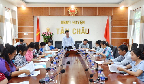 Hôm 14.9, ông Trần Lê Duy- Bí thư Tỉnh đoàn dẫn dầu đoàn giám sát của tỉnh đã có buổi làm việc với UBND huyện Tân Châu về việc thực hiện Quyết định số 34/2014 của Thủ tướng Chính phủ về quy định xã, phường, thị trấn phù hợp với trẻ em trên địa bàn huyện Tân Châu.