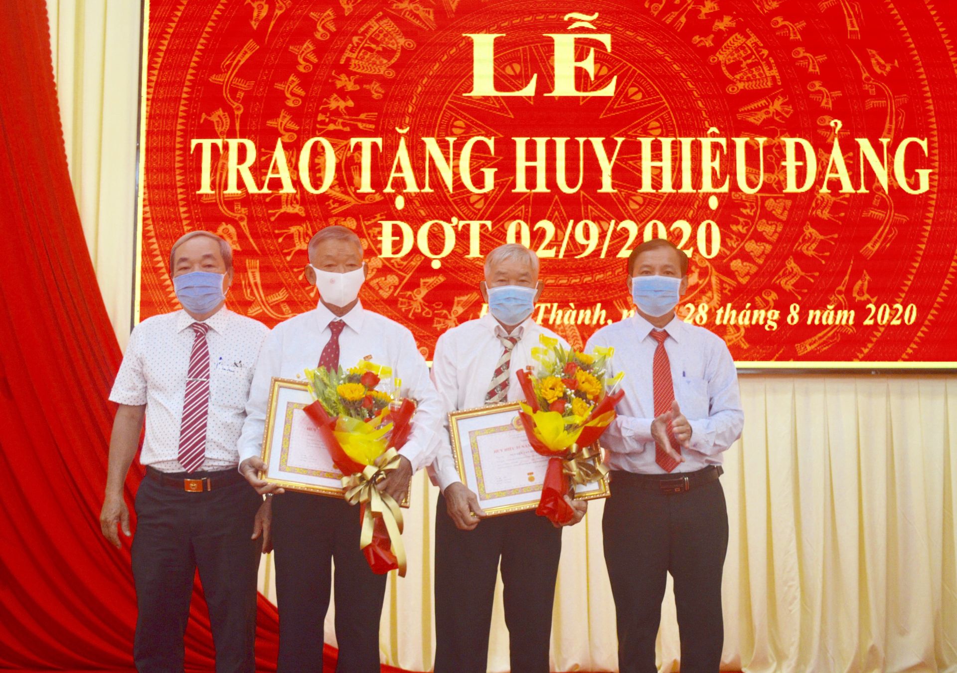 Huy hiệu 50 năm tuổi Đảng được trao cho ông Nguyễn Tấn Hiệp (sinh năm 1944, quê quán huyện Dương Minh Châu) và ông Nguyễn Văn Gấm (sinh năm 1942, quê quán tỉnh Long An); Huy hiệu 40 năm tuổi Đảng được trao cho ông Nguyễn Thái Bình (sinh năm 1954, quê quán thị xã Hòa Thành); Huy hiệu 30 năm tuổi Đảng được trao cho bà Nguyễn Thị Lượm (sinh năm 1962, quê quán thị xã Hòa Thành), ông Trần Văn Nấng (sinh năm 1961, quê quán thị xã Trảng Bàng) và ông Lê Minh Nhựt (sinh năm 1961, quê quán tỉnh An Giang).