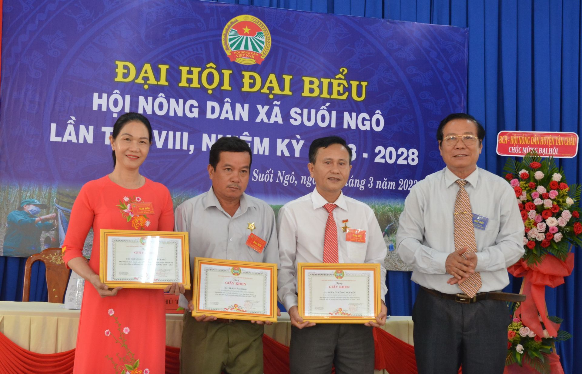 Tại Đại hội, Hội Nông dân huyện Tân Châu khen thưởng cho 1 tập thể và 2 cá nhân có thành tích xuất sắc trong các phong trào nông dân nhiệm kỳ 2018-2023.