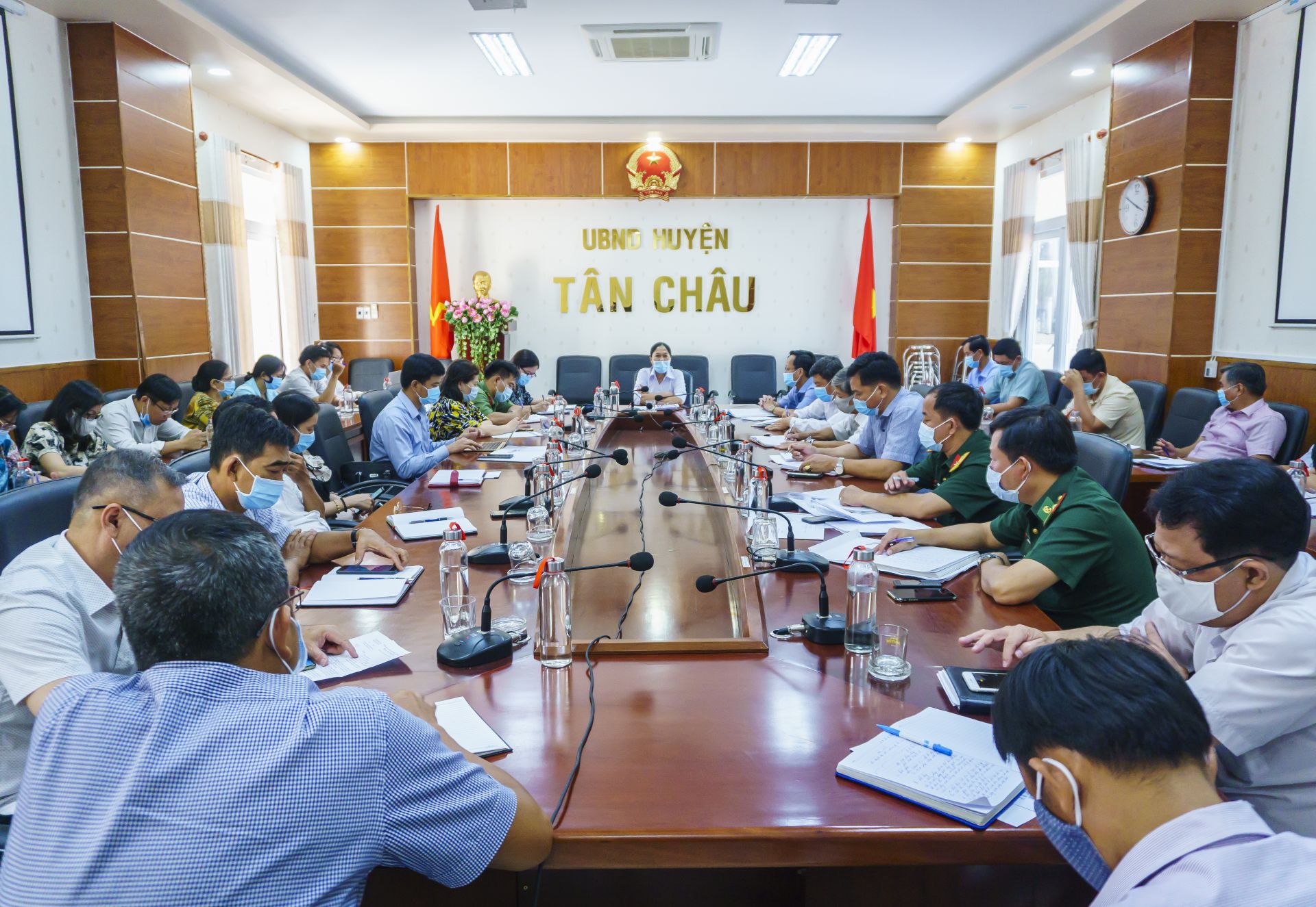 Chiều 24.3, bà Nguyễn Thị Thành- Chủ tịch UBND huyện Tân Châu chủ trì cuộc họp Ban Chỉ đạo phòng, chống dịch Covid-19 trên địa bàn huyện.