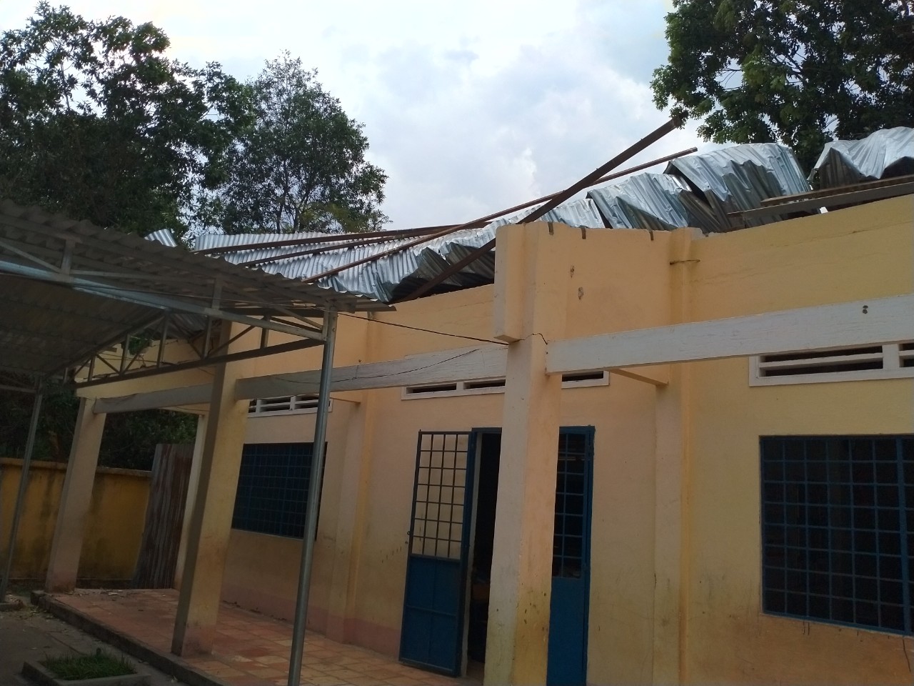Cơn mưa chiều ngày 6.5 đã làm cho ngôi trường ở xã Tân Phú bị tốc mái.