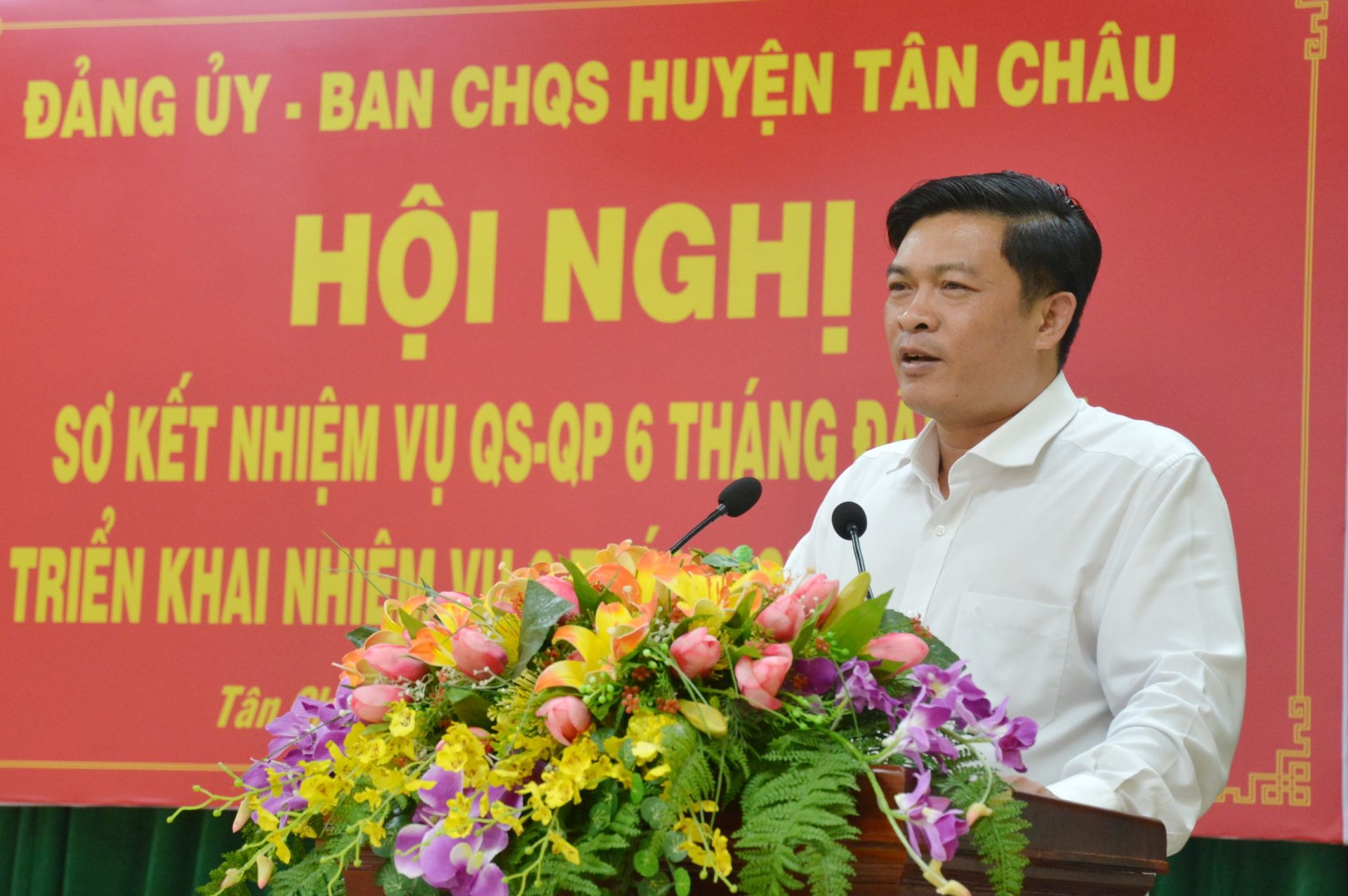 Chiều 19.6, Đảng ủy, Ban CHQS huyện Tân Châu tổ chức hội nghị sơ kết công tác quân sự quốc phòng 6 tháng đầu năm và triển khai phương hướng nhiệm vụ 6 tháng cuối năm 2023. Đến dự có ông Võ Hồng Sang- Phó Bí thư Huyện ủy, Chủ tịch UBND huyện.