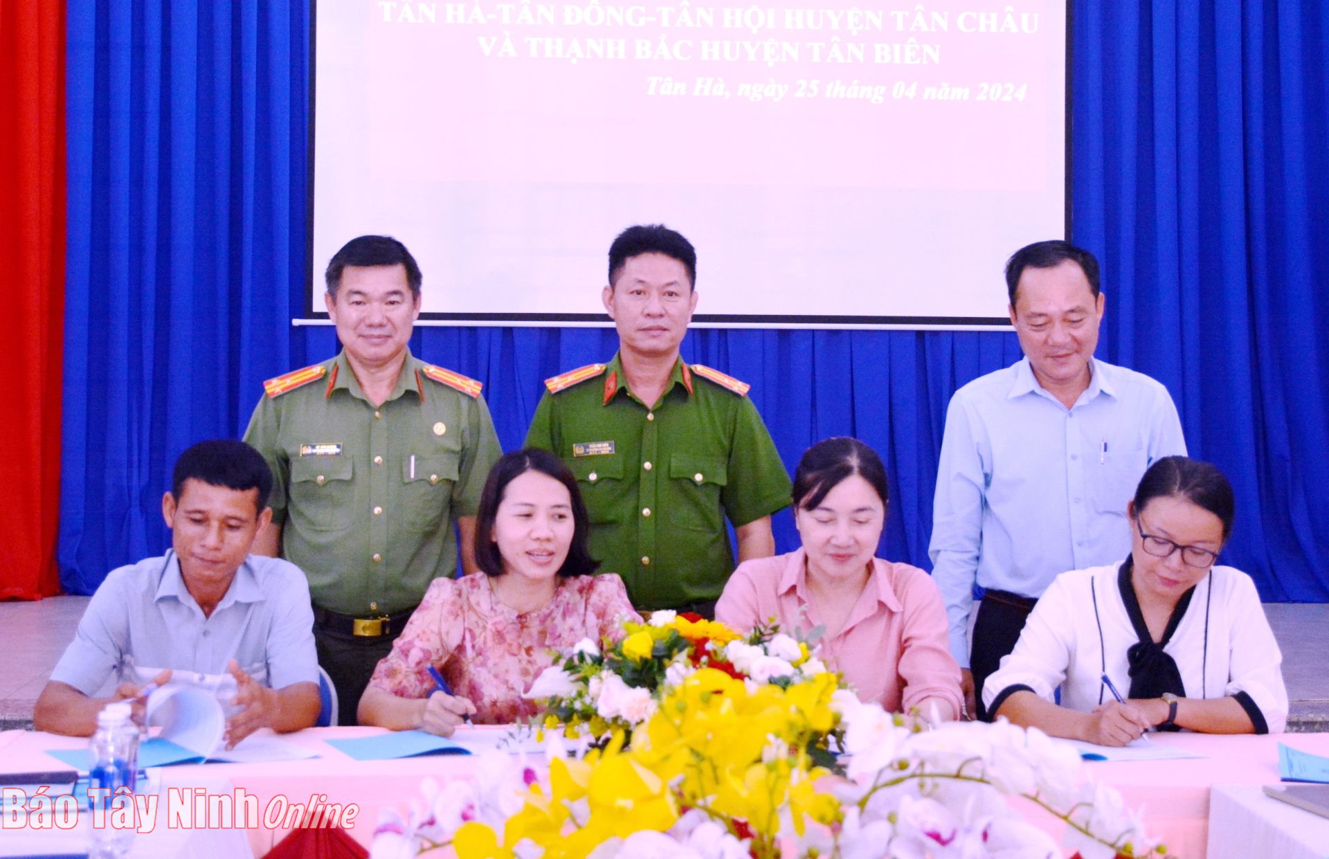 Chiều 25.4, tại UBND xã Tân Hà, huyện Tân Châu diễn ra hội nghị ký kết quy chế phối hợp bảo đảm an ninh trật tự giữa 4 xã Tân Hà, Tân Hội, Tân Đông (huyện Tân Châu) và xã Thạnh Bắc (huyện Tân Biên).