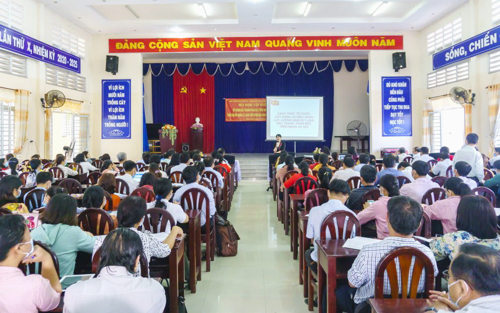 Tại hội nghị, 160 cán bộ quản lý và giáo viên trên địa bàn huyện đã được bà Nguyễn Thị Thu Cúc-Phó Trưởng Ban Tuyên giáo Tỉnh ủy tập huấn các nội dung như: an ninh mạng và kỹ năng nhận diện thông tin xấu độc trên internet; hướng dẫn nắm bắt thông tin, tuyên truyền, sử dụng và ứng xử văn minh trên mạng xã hội; kỹ năng đấu tranh, phản bác và tháo gỡ các tin xấu, độc trên mạng xã hội.