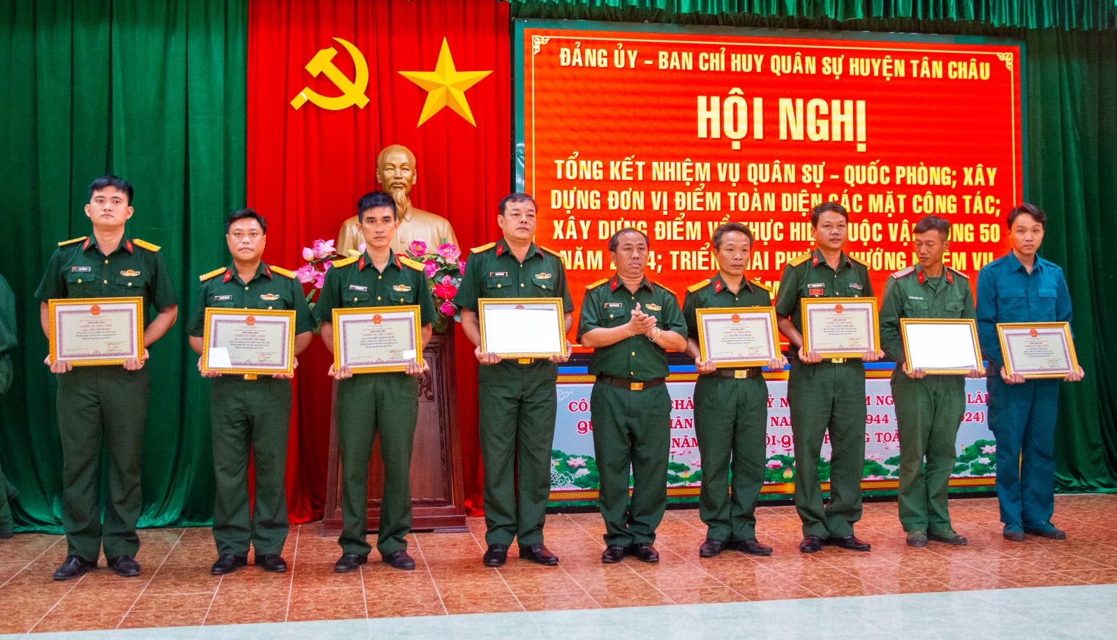 Dịp này, Ban Chỉ huy Quân sự huyện tặng giấy khen cho 13 tập thể và 24 cá nhân có thành tích tiêu biểu trong phong trào thi đua Quyết thắng và xây dựng “Đơn vị văn hóa tiêu biểu” năm 2024.