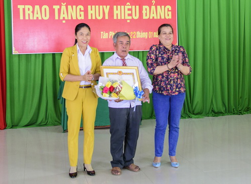 Trao tặng Huy hiệu Đảng cho đảng viên Hồ Văn Dõng.