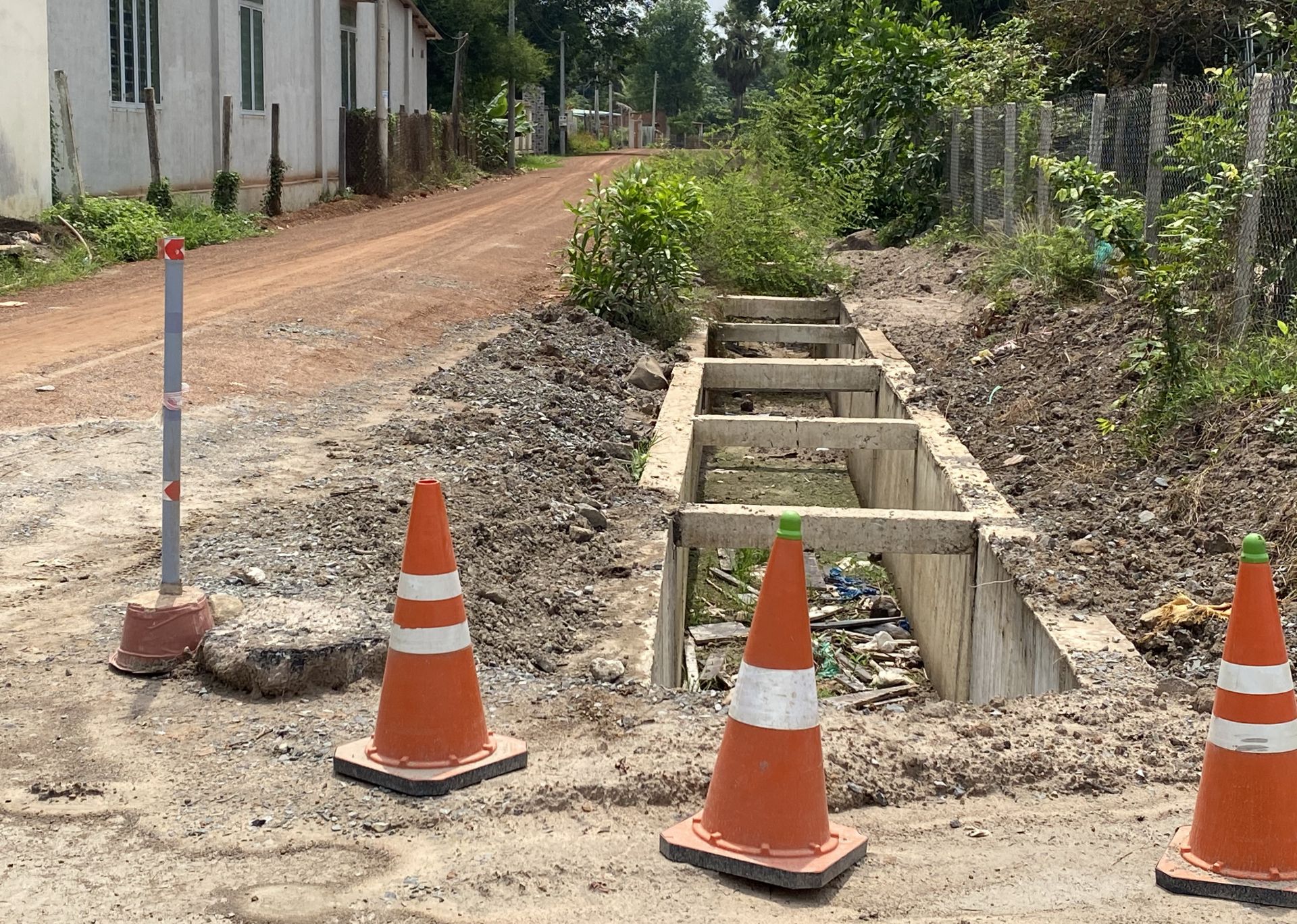 Hệ thống cống qua đường 785, đoạn xã Tân Hưng vẫn chưa thể thông do còn vướng công tác giải phóng mặt bằng.