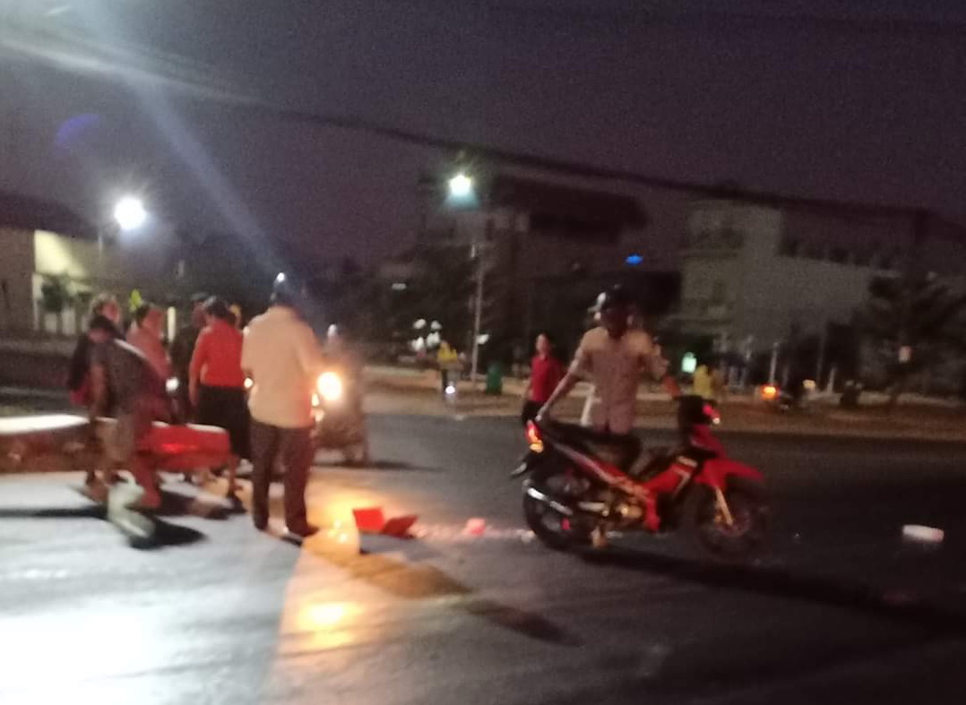 Người dân bị té ngã do nước từ các xe chở mũ cao su chảy xuống đường khiến đường trở nên trơn trợt.