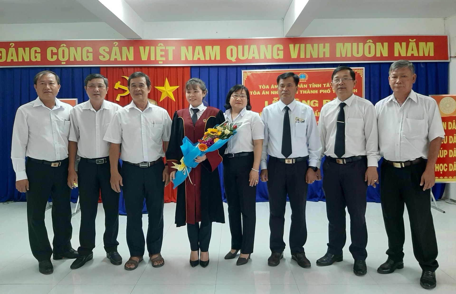 Tân Thẩm phán chụp hình kỷ niệm với lãnh đạo Tòa án tỉnh và Tòa án thành phố Tây Ninh.