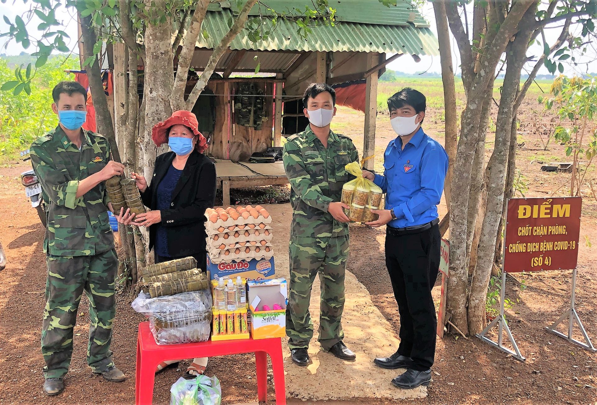 Ngày 18.4, Thành đoàn TP.Tây Ninh và người dân xã Tân Bình (TP.Tây Ninh) đã trao 280 đòn bánh tét cùng các nhu yếu phẩm cho cán bộ, chiến sĩ trực chiến tại các chốt chặn chống dịch bệnh Covid-19 trên tuyến biên giới thuộc huyện Tân Biên và Tân Châu.
