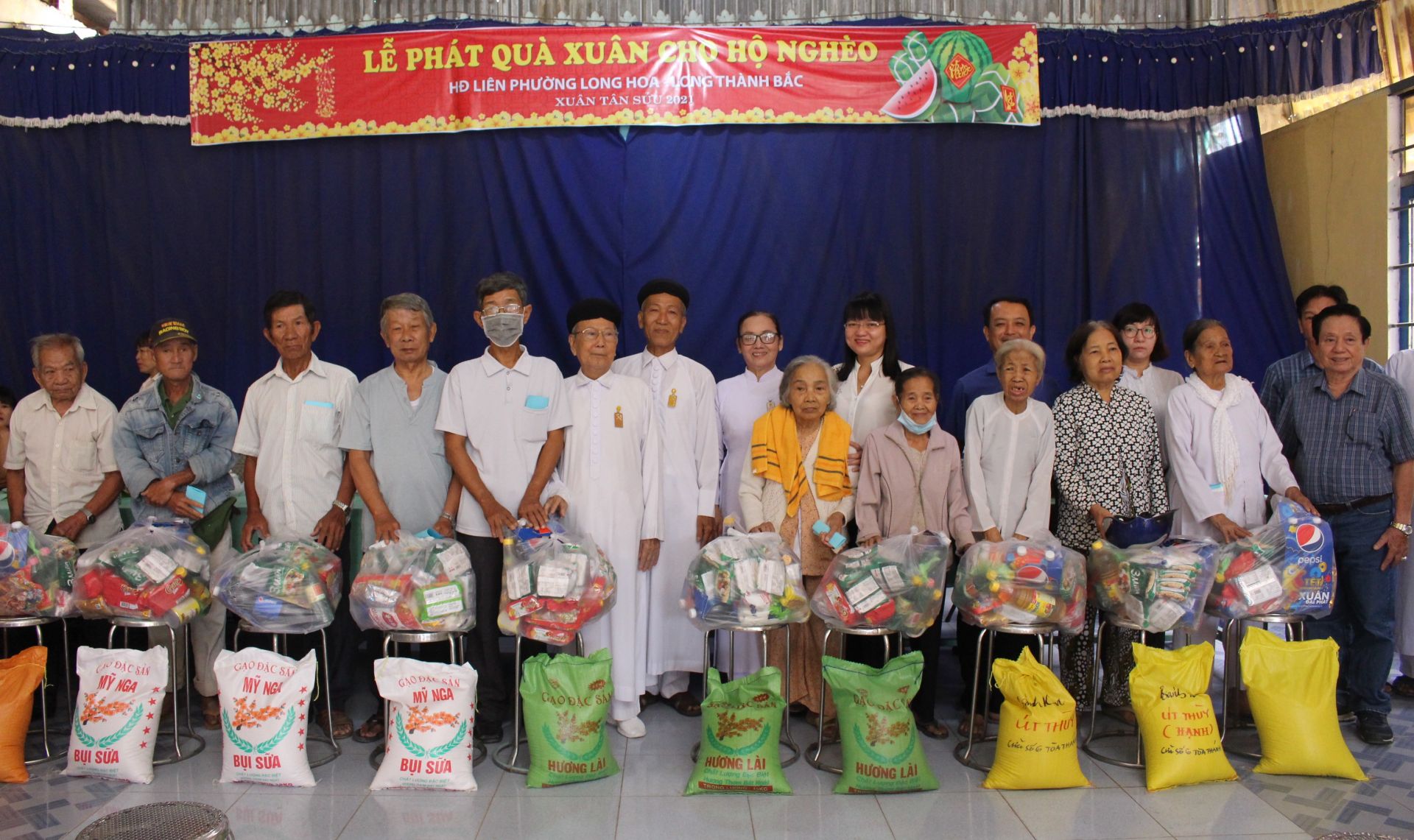 Có 430 phần quà được trao cho 430 người nghèo, hội viên, phụ nữ có hoàn cảnh khó khăn. Mỗi phần quà trị giá trên 400.000 đồng gồm gạo, mì, dầu, bánh kẹo tết… Chi phí tặng quà do Tổ Phụ nữ tôn giáo thực hiện phương châm sống tốt đời đẹp đạo phường Long Hoa và phường Long Thành Bắc vận động mạnh thường quân ủng hộ.