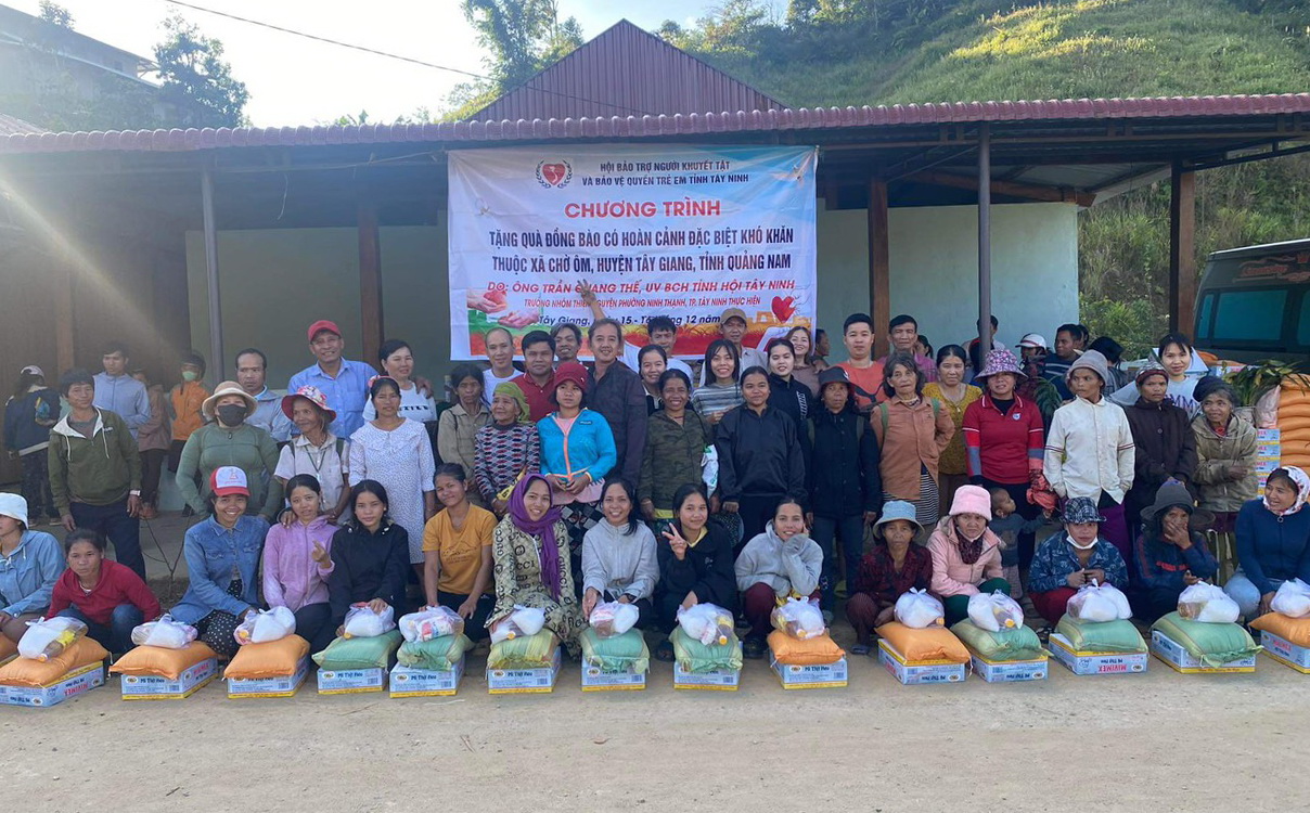 Mới đây, Hội Bảo trợ người khuyết tật và Bảo vệ quyền trẻ em tỉnh Tây Ninh tổ chức đoàn từ thiện đến thăm và tặng quà cho bà con dân tộc thiểu số miền núi tại xã Ch’Ơm (thuộc huyện Tây Giang, tỉnh Quảng Nam).