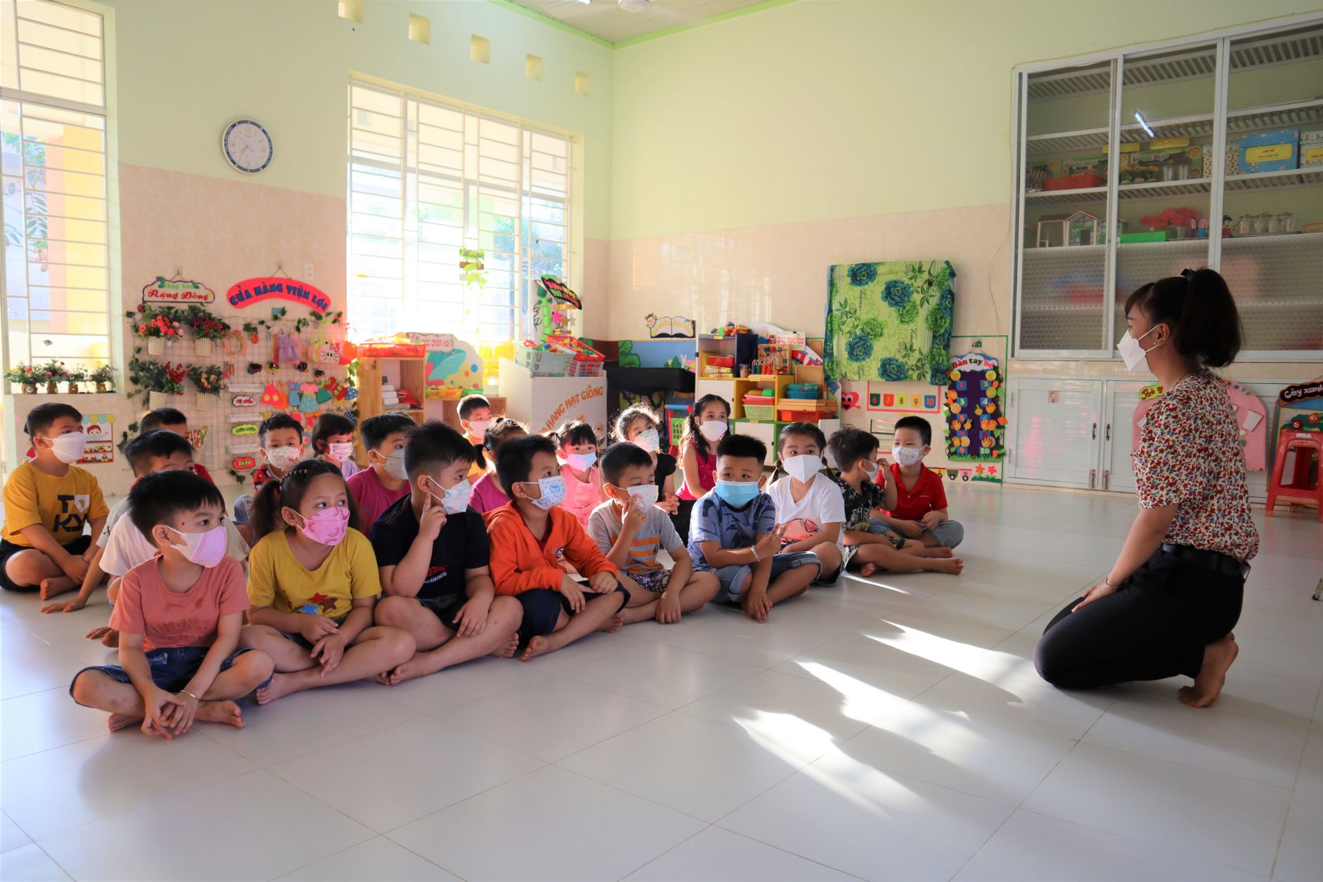 Giờ học ở Trường mầm non xã Phan, huyện Dương Minh Châu. Ảnh: Vũ Nguyệt