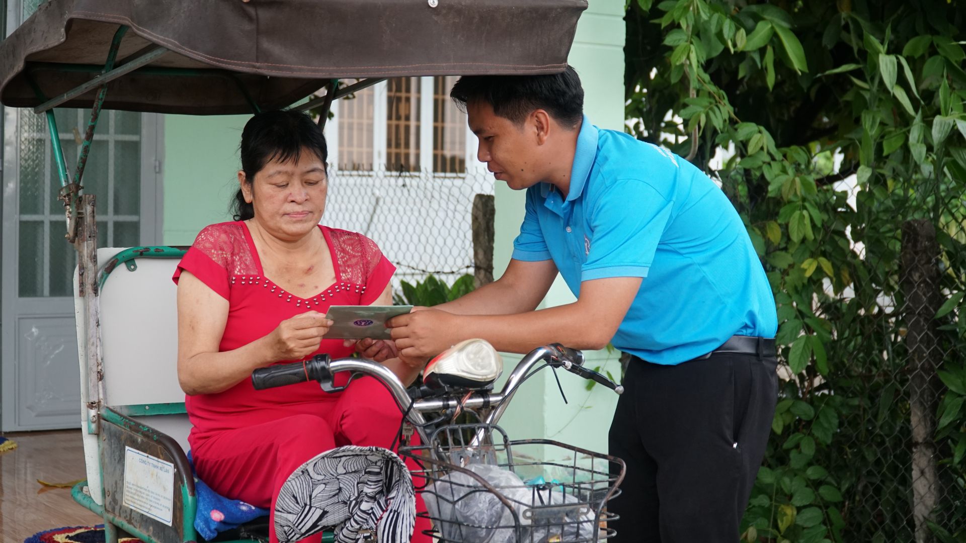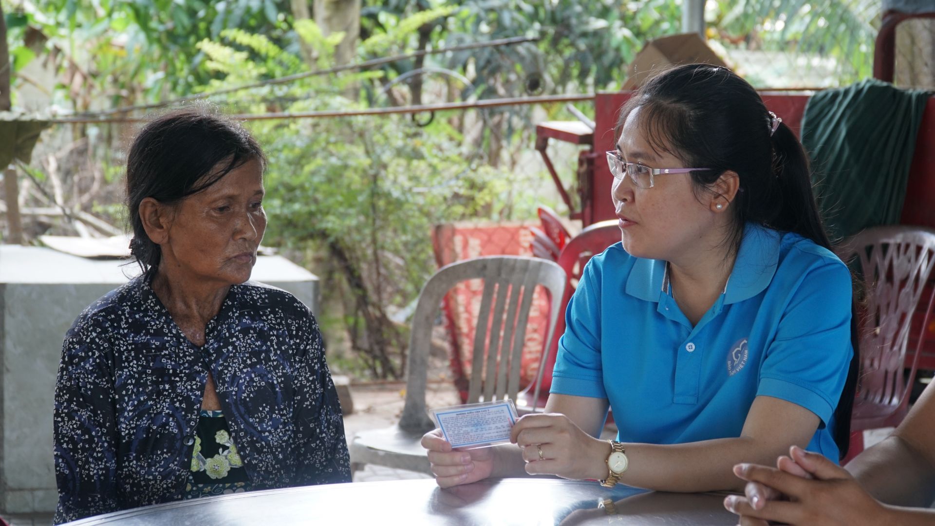 Cán bộ UBND xã Bình Minh (TP Tây Ninh) vận động người dân tham gia BHYT hộ gia đình trở lại. (Ảnh: Tâm Giang).