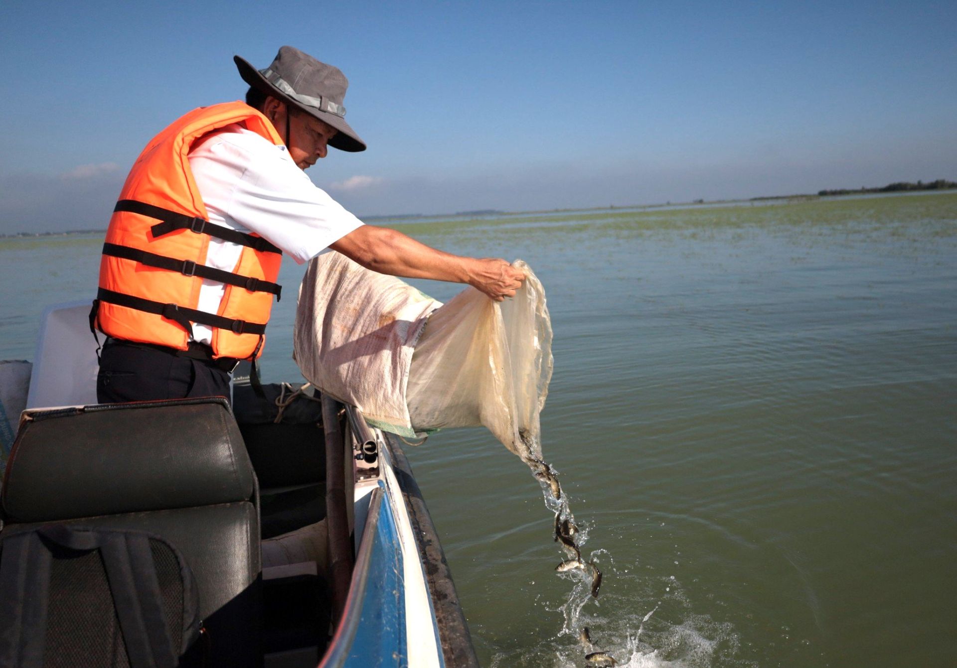 Ngành chức năng thả cá giống vào hồ Dầu Tiếng.
