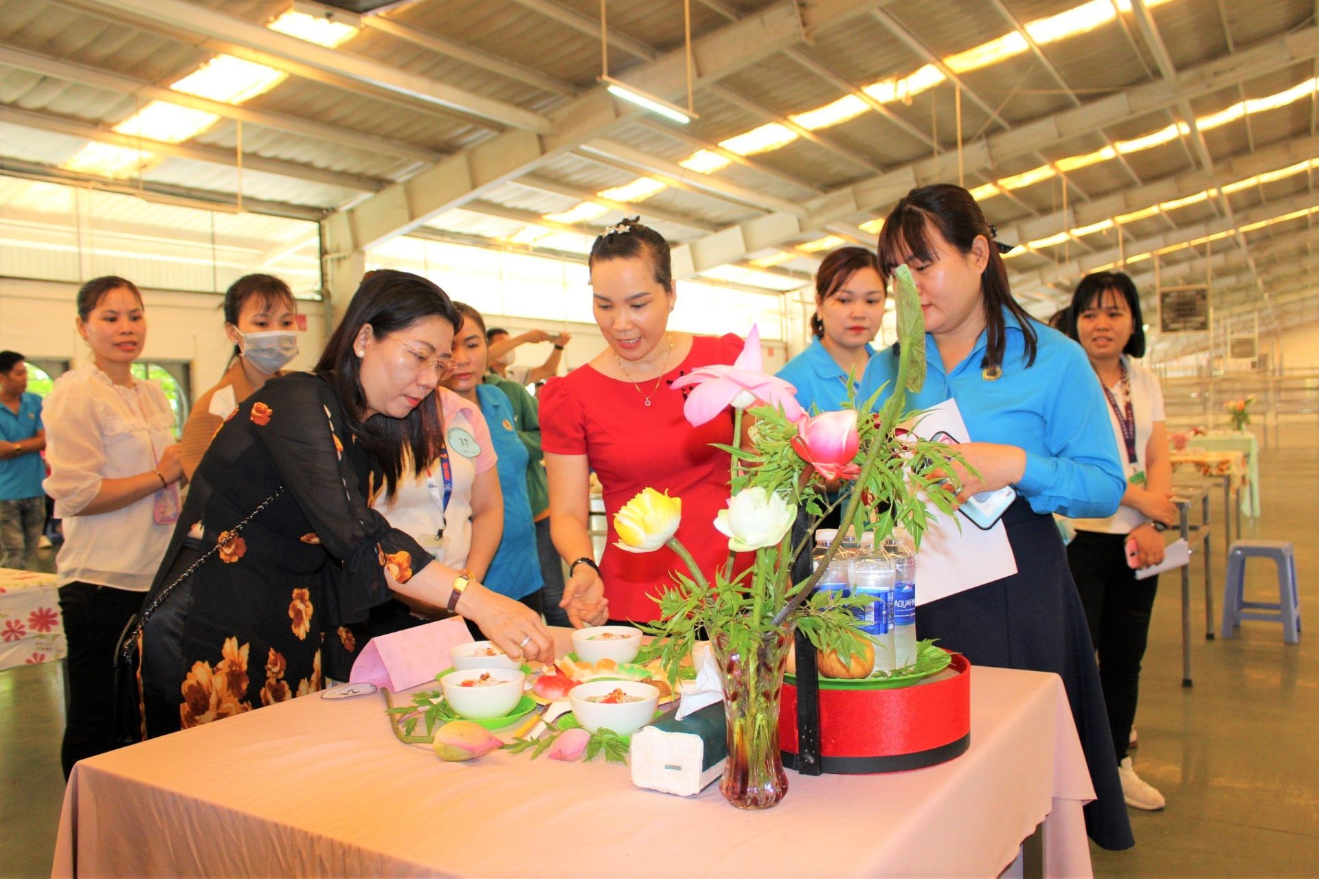 Thanh niên công nhân Công ty TNHH Pouhung Việt Nam tham gia hội thi nấu ăn thường niên do Công ty tổ chức.