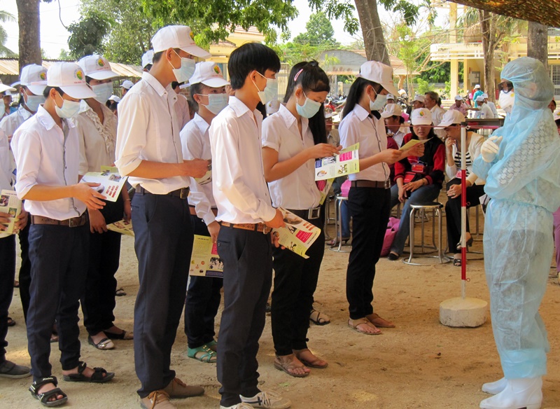Phát tờ rơi truyền thông về phòng chống cúm A/H1N1 cho học sinh- Ảnh minh hoạ