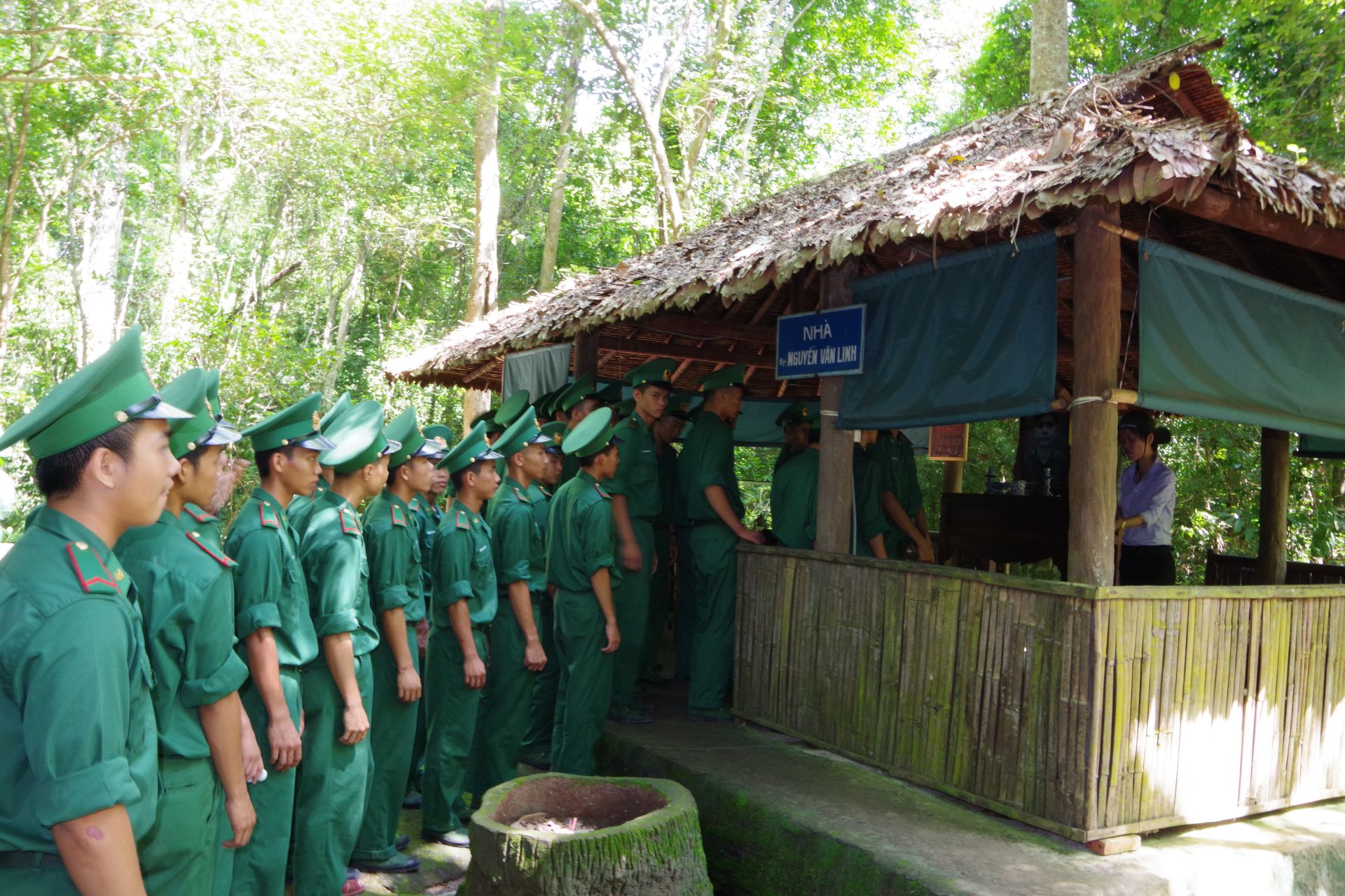 Chiến sĩ mới tham quan nhà ở và nơi làm việc của các đồng chí lãnh đạo trong Trung ương Cục miền Nam.