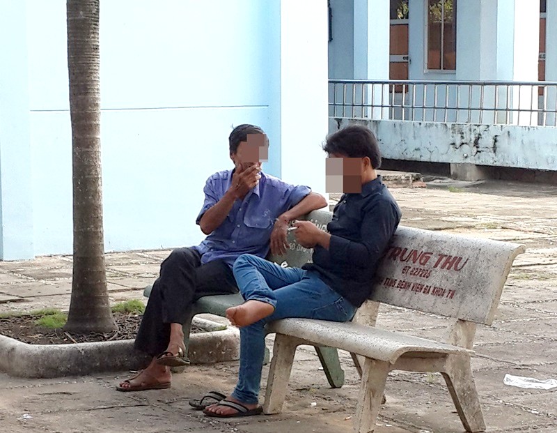 | Dù các cơ sở y tế cấm hút thuốc lá nhưng nhiều người vẫn vô tư hút thuốc trong khuôn viên bệnh viện. |