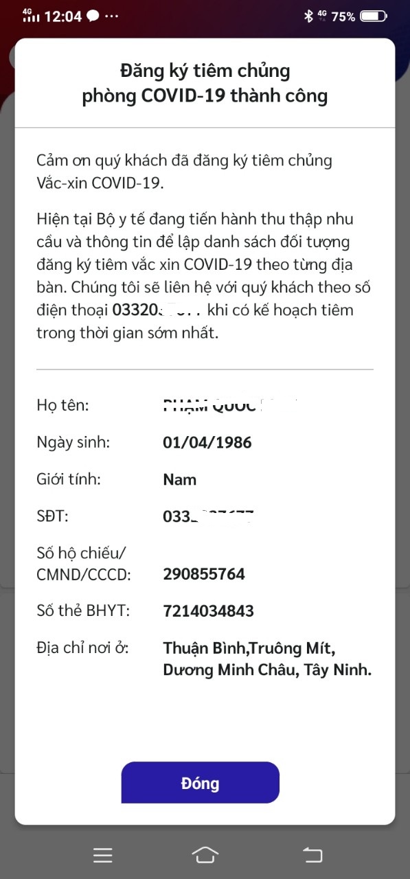 Một người dân đăng ký tiêm chủng qua mạng thành công.