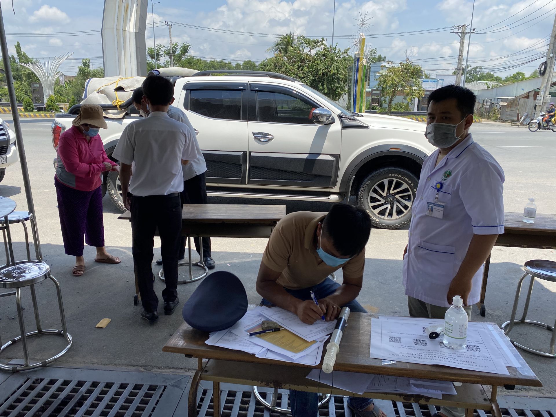 Kiểm tra y tế người dân vào tỉnh tại chốt kiểm soát Covid-19 ( Suối Sâu, thị xã Trảng Bàng)