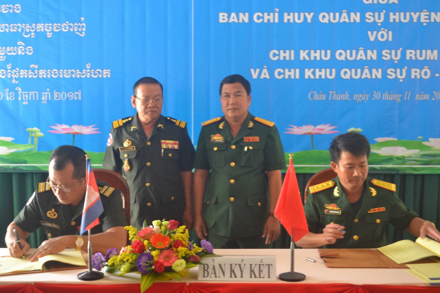 Ngày 30.11, tại huyện Châu Thành đã diễn ra hội nghị tổng kết hoạt động hợp tác năm 2017 giữa Ban Chỉ huy quân sự (CHQS) huyện Châu Thành với Chi khu quân sự huyện Romdoul và Romeas Haek, thuộc Tiểu khu Quân sự tỉnh Svay Rieng, Campuchia.
