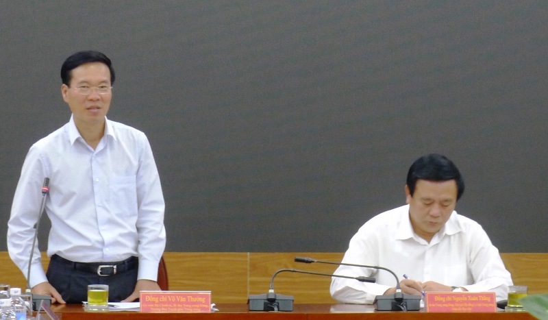 Đồng chí Võ Văn Thưởng phát biểu kết luận buổi làm việc. Ảnh: HM