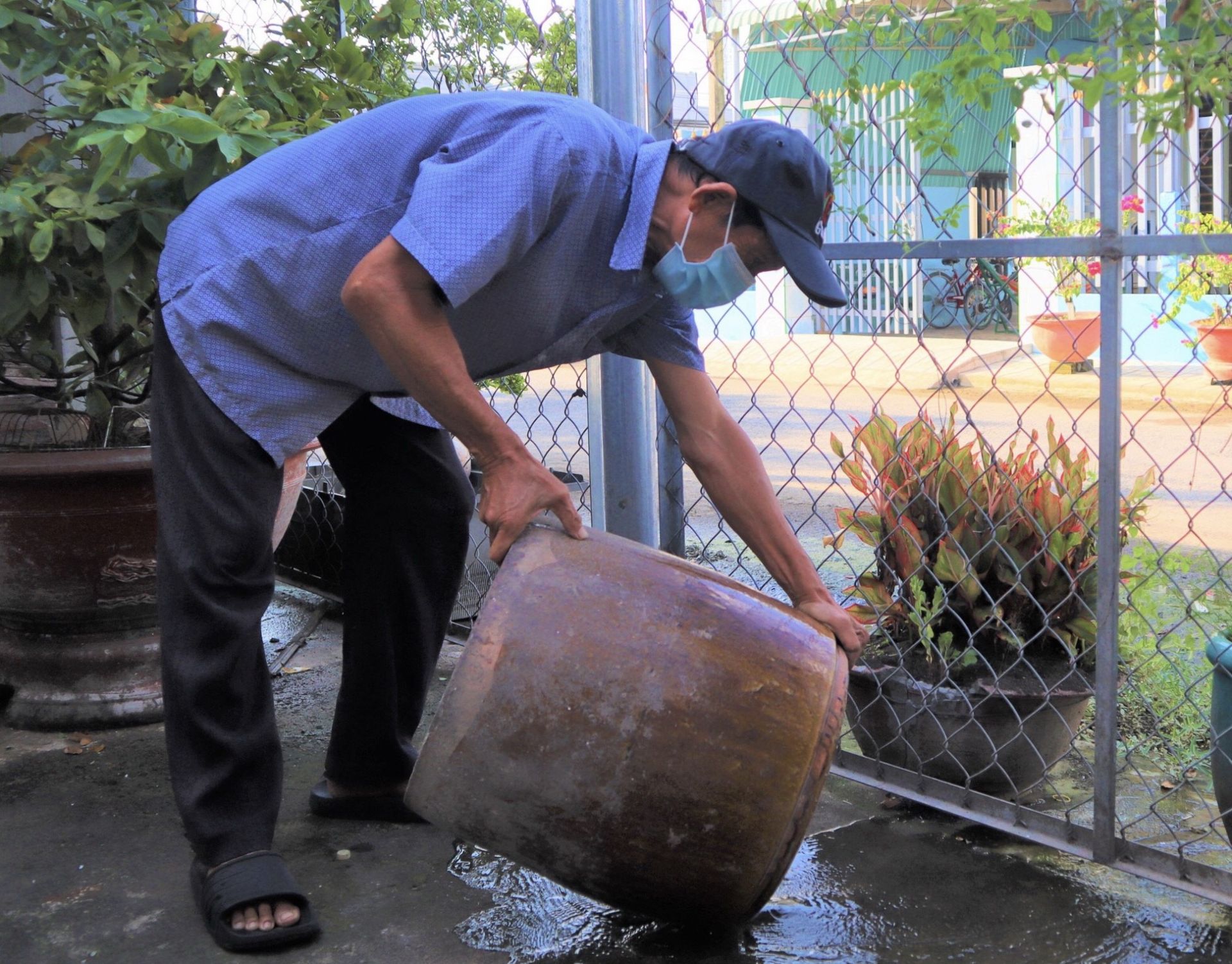 Người dân trên địa bàn TP. Tây Ninh lật úp dụng cụ không chứa nước để diệt lăng quăng, phòng, chống bệnh SXH.
