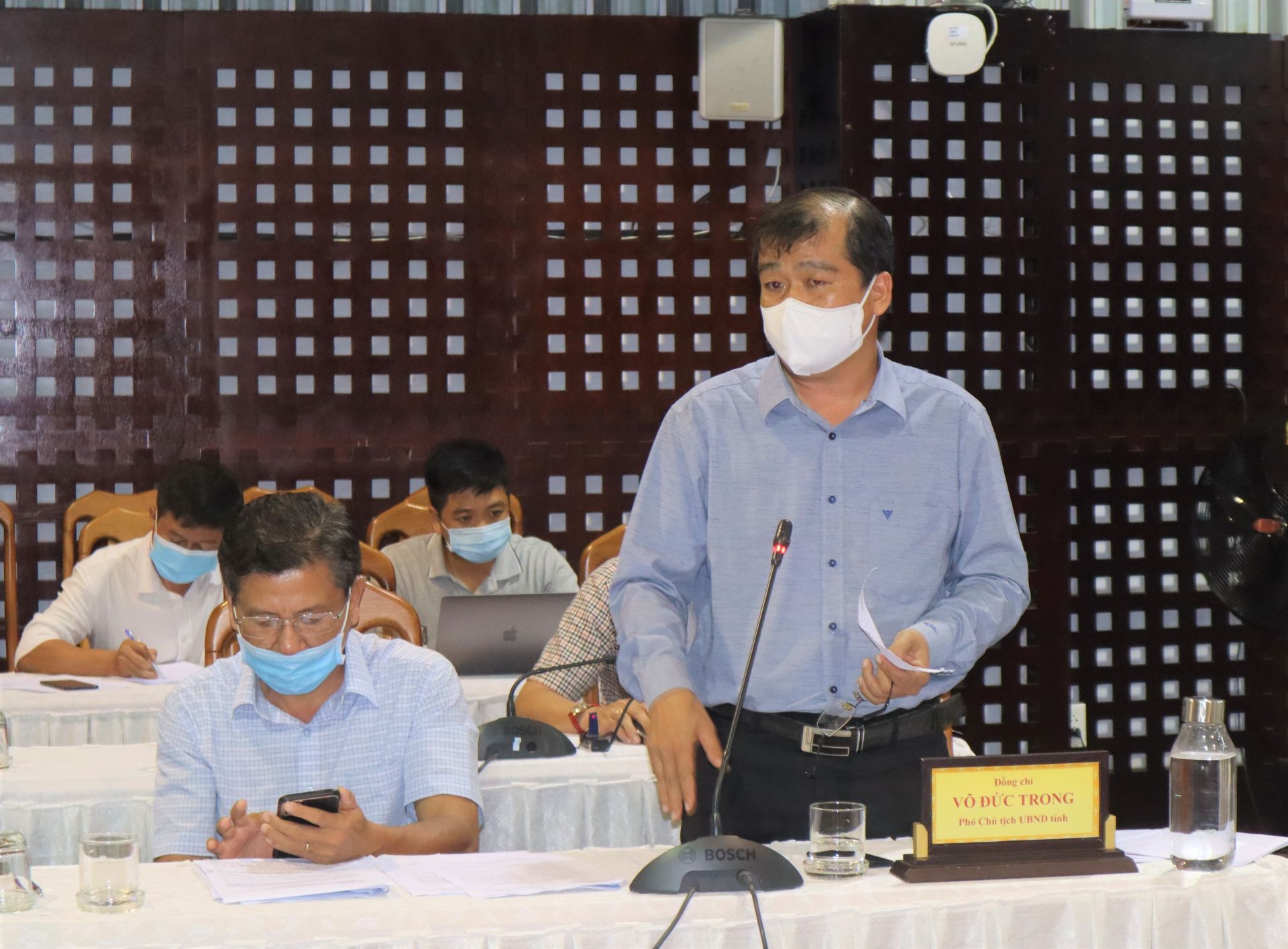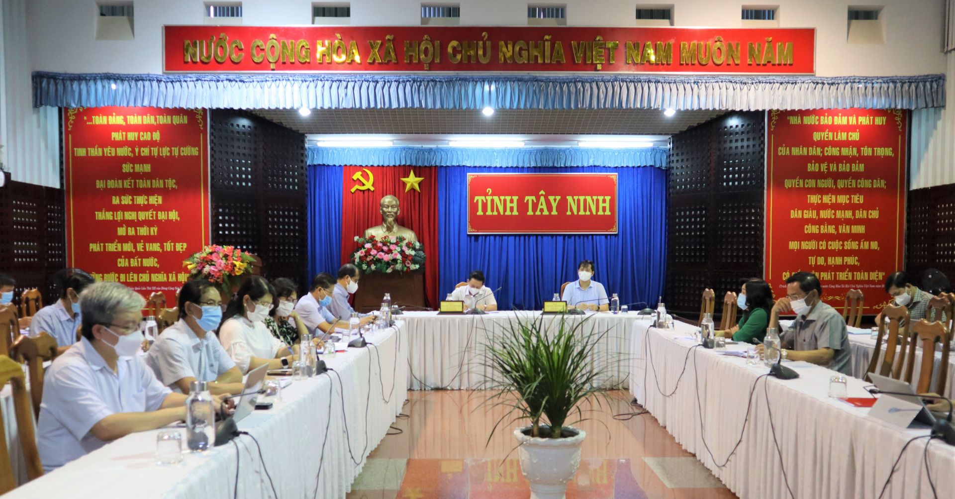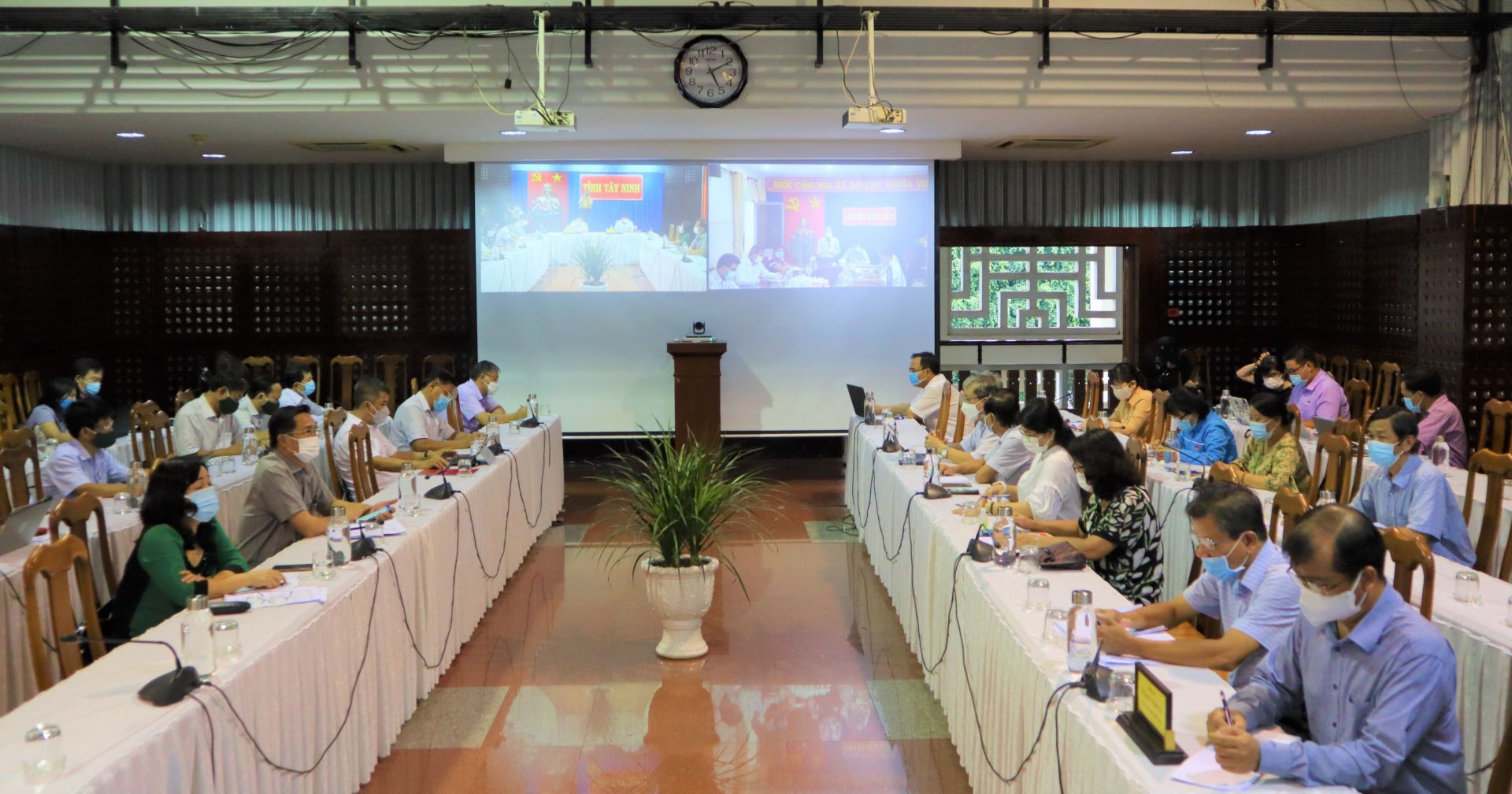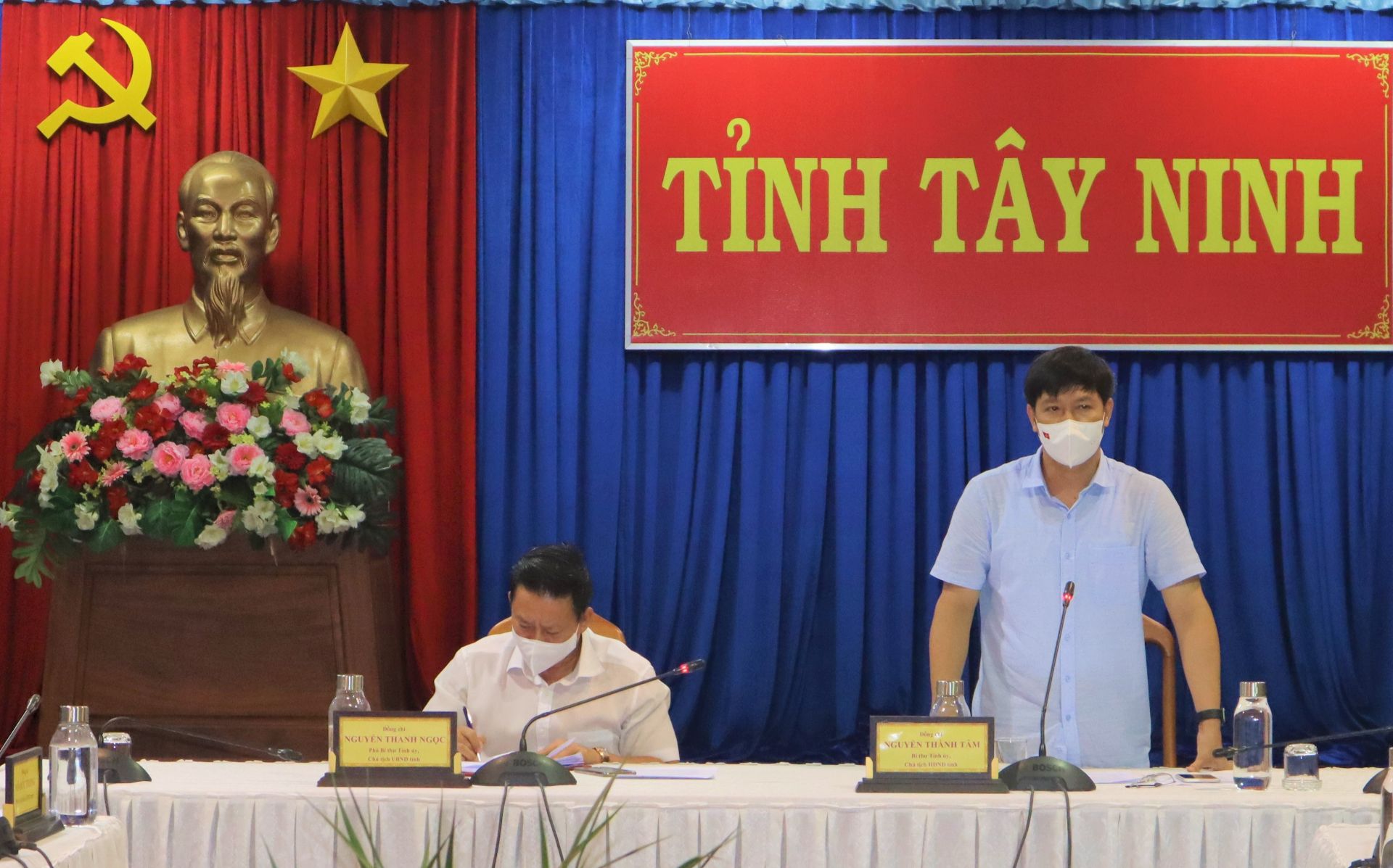 Phát biểu chỉ đạo, Bí thư Tỉnh uỷ Nguyễn Thành Tâm yêu cầu toàn hệ thống chính trị không được chủ quan, lơ là, phải luôn trong tâm thế sẵn sàng ứng phó với dịch bệnh. Các địa phương cần đánh giá hệ thống phòng chống dịch với quyết tâm và trách nhiệm cao nhất. Các sở, ban, ngành nâng cao năng lực ứng phó với dịch bệnh, bao gồm năng lực xét nghiệm; năng lực cách ly, đảm bảo an toàn, không để khu cách ly trở thành ổ dịch; năng lực điều trị… Tập trung quản lý nguồn lây nhiễm trong cộng đồng, ứng dụng khoa học công nghệ, phát huy Tổ Covid cộng đồng, đi từng ngõ, gõ từng nhà, rà soát các đối tượng về từ vùng có dịch; Giám sát công tác cách ly, kể cả cách ly tại nhà. Tại các khu công nghiệp phải tăng cường công tác kiểm tra, giám sát các công nhân đến làm việc.