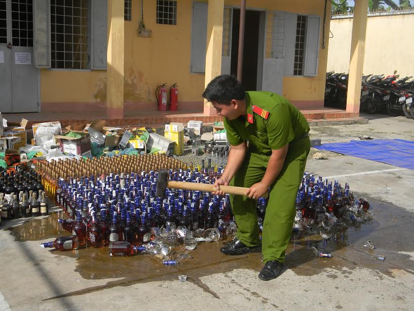 Công an Gò Dầu tiêu hủy rượu nhập lậu, không có nguồn gốc.