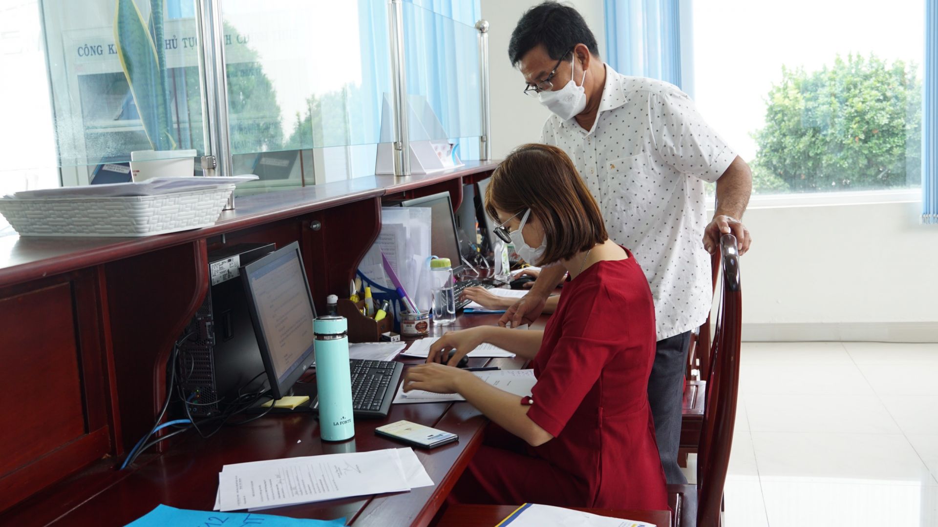 Người nộp thuế được nhân viên thuế hỗ trợ khai thuế điện tử.
