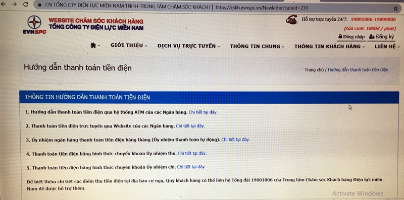 Khách hàng có thể truy cập website của EVN SPC để tìm hiểu cách thức thanh toán hoá đơn không sử dụng tiền mặt - Ảnh minh hoạ