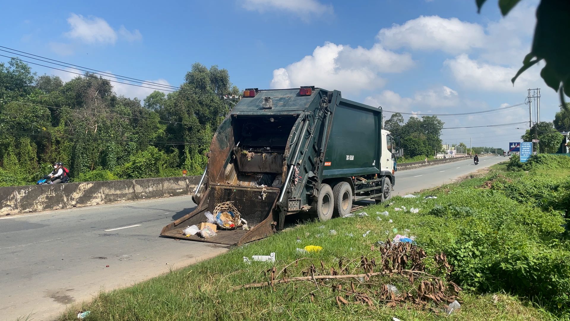 Xe thu gom rác thải sinh hoạt thỉnh thoảng phải dẹp rác thải vứt không đúng nơi quy định theo các tuyến đường. Ảnh minh hoạ