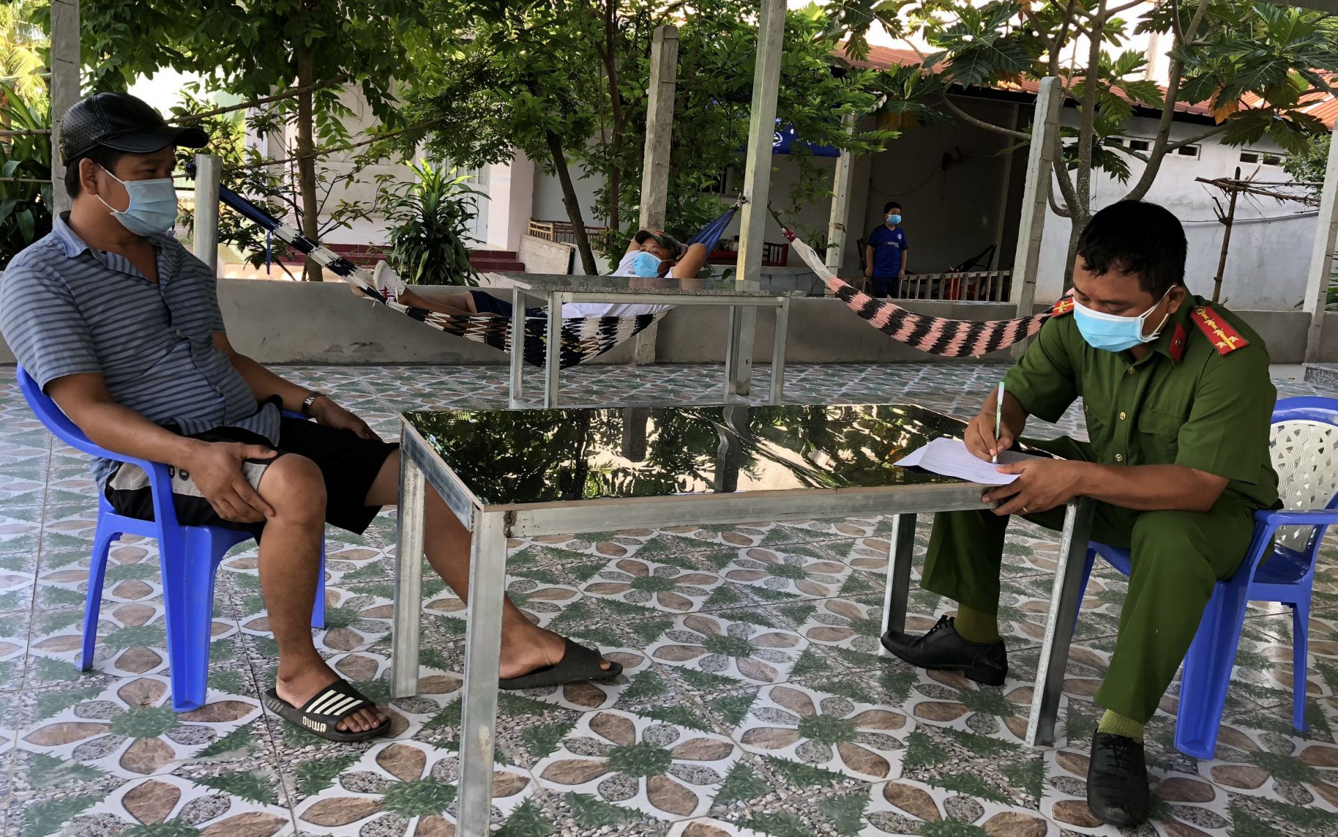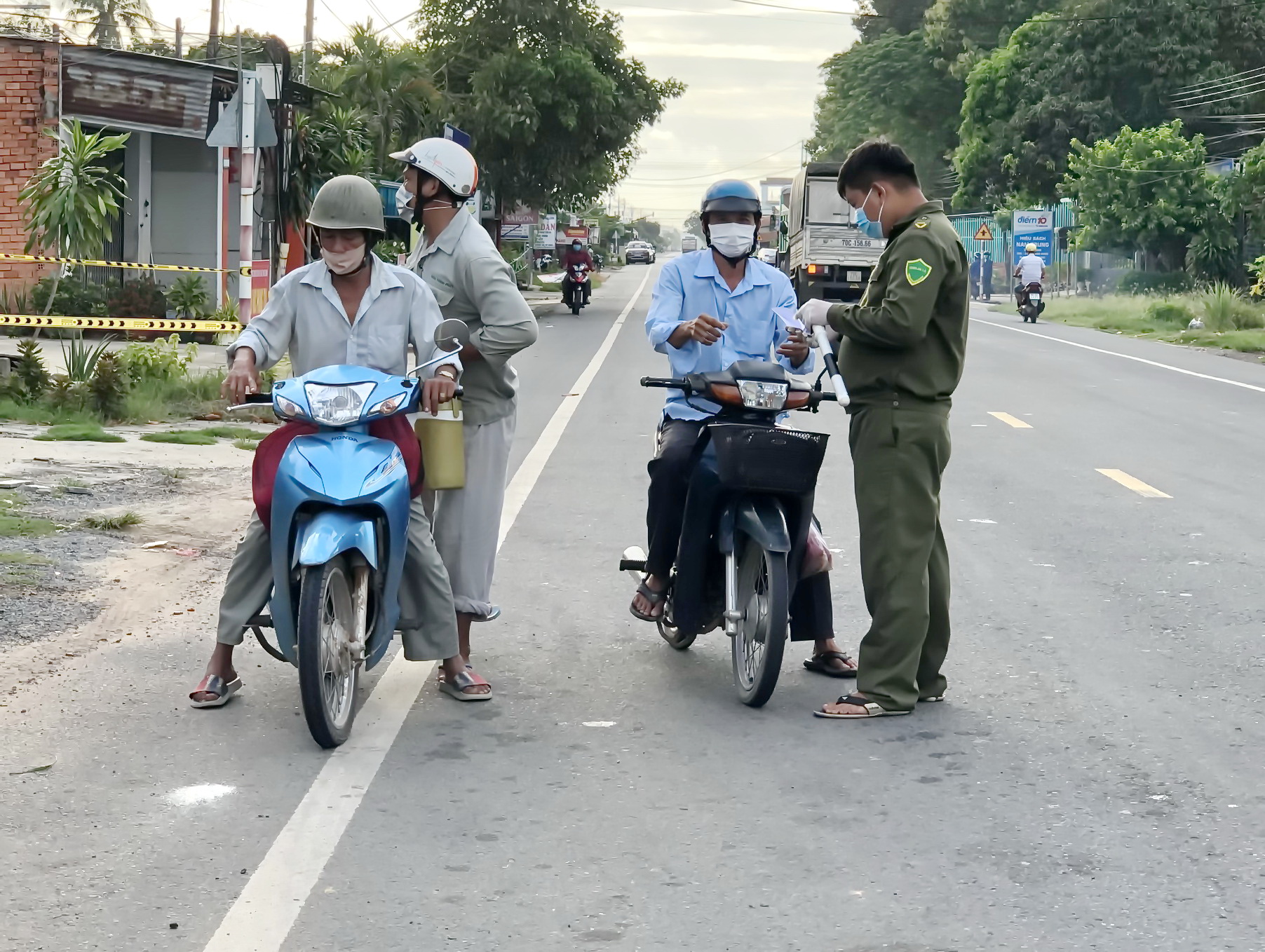 Kiểm tra tại khu vực tổ 9, ấp Suối Dộp, đoàn công tác phát hiện một quán giải khát có 3 người ngồi uống nước, không thực hiện giãn cách, 1 người đi mua đồ nhưng không đeo khẩu trang. Thấy đoàn kiểm tra, một số người viện lý do: “Tôi chỉ mới vào quán ngồi, chưa kịp uống nước” hay “nhà tôi ở đối diện quán, chỉ mua mì gói rồi về liền”, mong lực lượng chức năng “thông cảm lần này”…