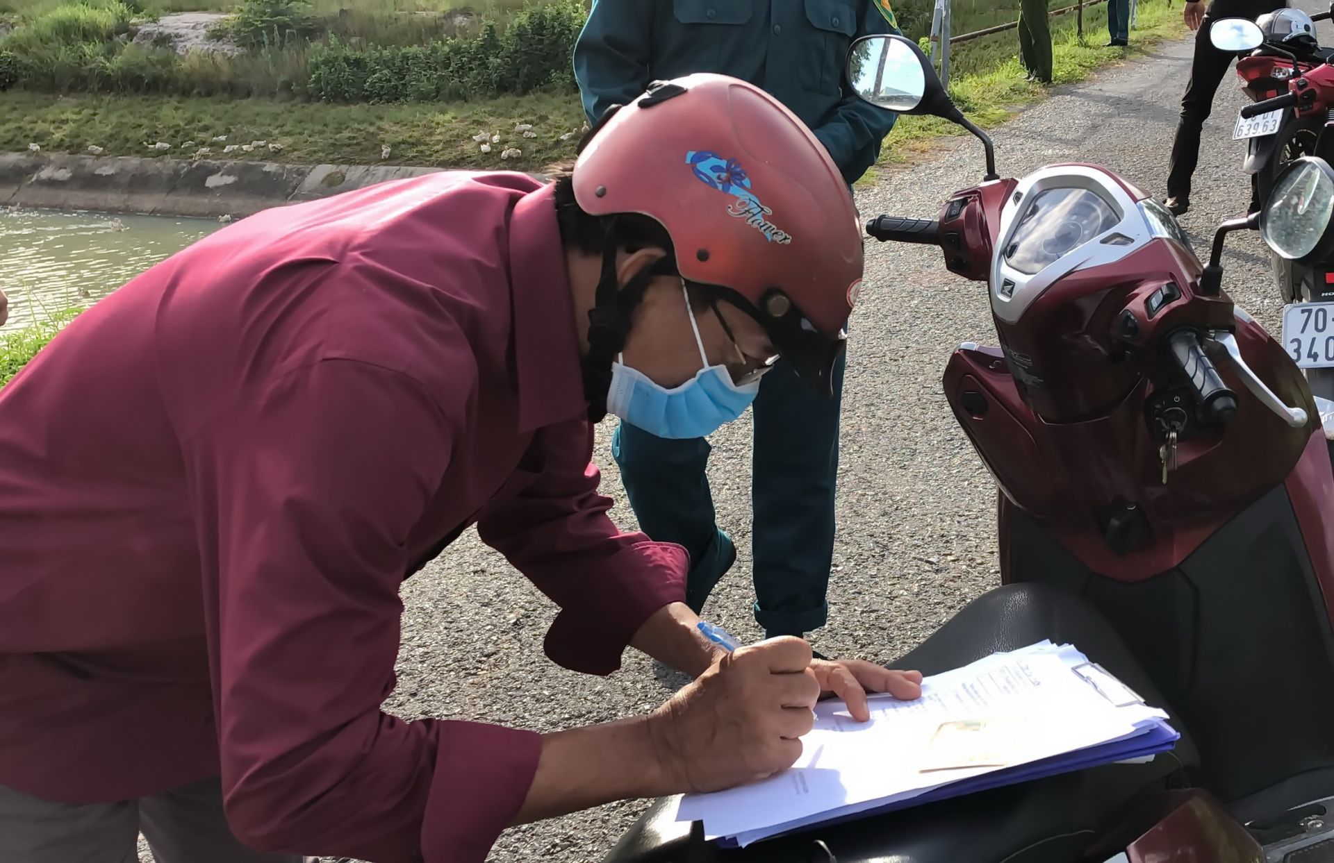 Người dân ký tên vào biên bản xử phạt vi phạm hành chính do vi phạm Chỉ thị 16.